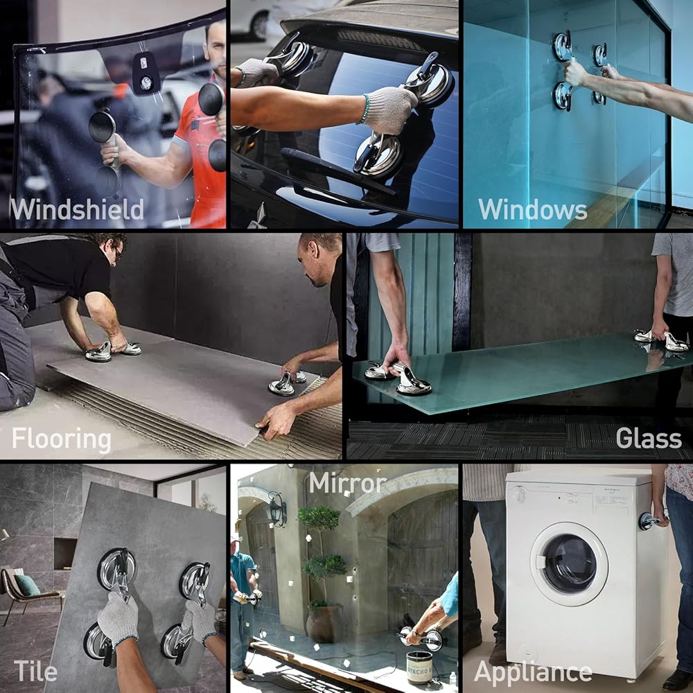 [متعددة الأغراض] تعتبر أكواب الشفط الزجاجية المفرغة الخاصة بنا أدوات متعددة الاستخدامات تتفوق في رفع الزجاج، وحمل البلاط، وتحريك المرايا، وتحريك خزان الأسماك، وتثبيت فجوة الأرضيات، وتركيب/إزالة النوافذ والزجاج الأمامي، وتحريك الأجهزة الكبيرة ونقلها مثل الثلاجات، غسالة ملابس. كما أنها رائعة للإمساك بالأشياء الناعمة الأخرى مثل حوض الاستحمام والشاشات الكبيرة والوسائد والأجهزة اللوحية والأبواب.