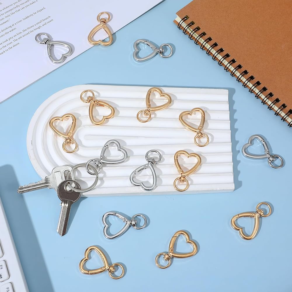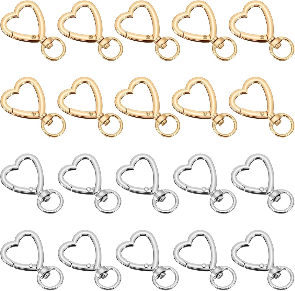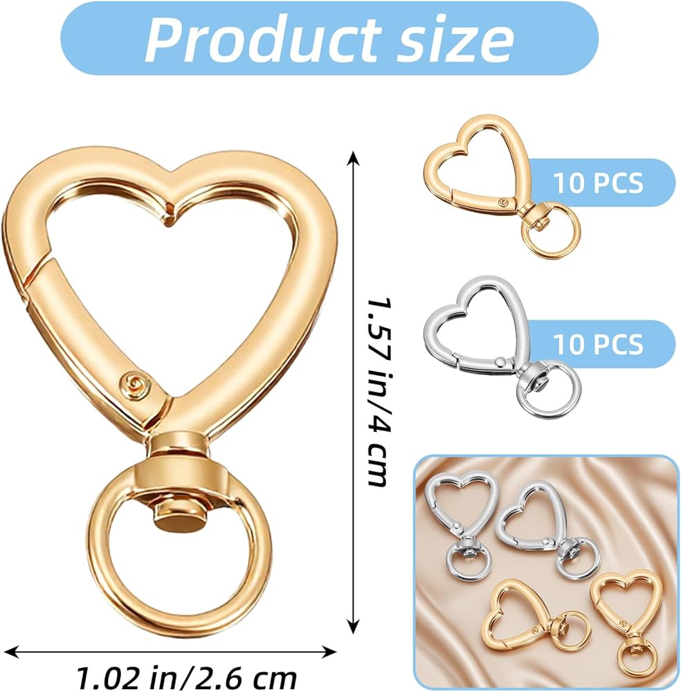 Versatile Pack: Includes 20 heart-shaped keychain clips in silver and gold, each measuring 1.57 x 1.02 inches. Ideal for wristlets, key holders, and more, offering ample quantity for various uses.
