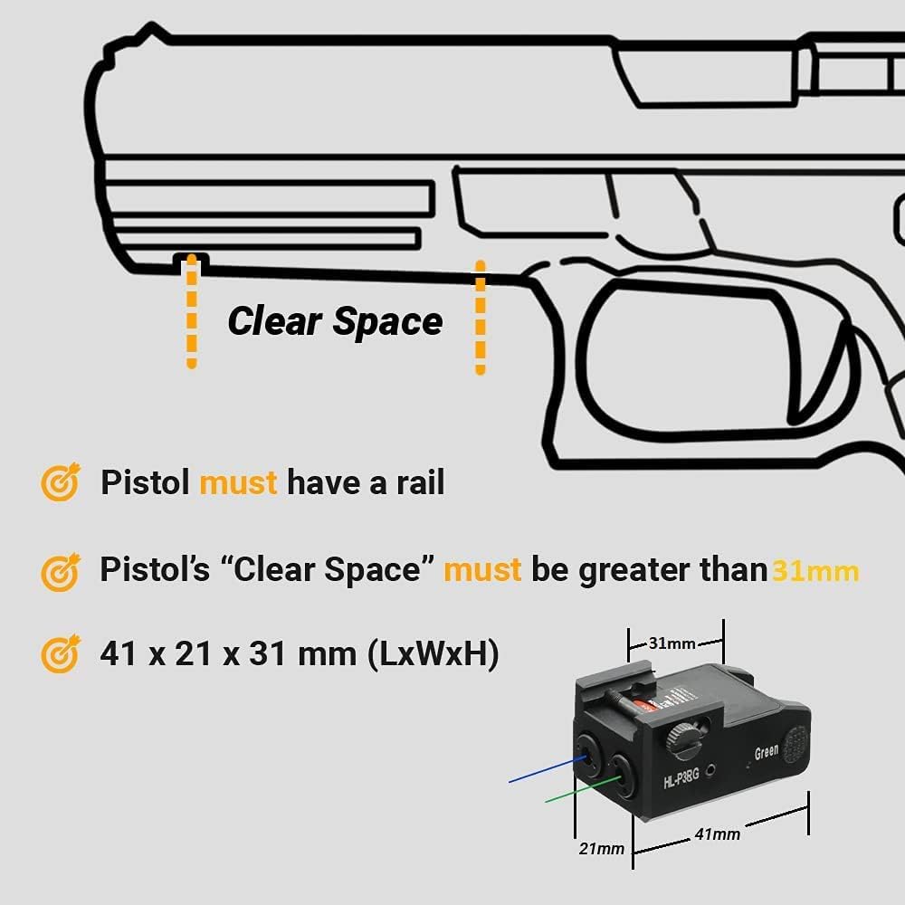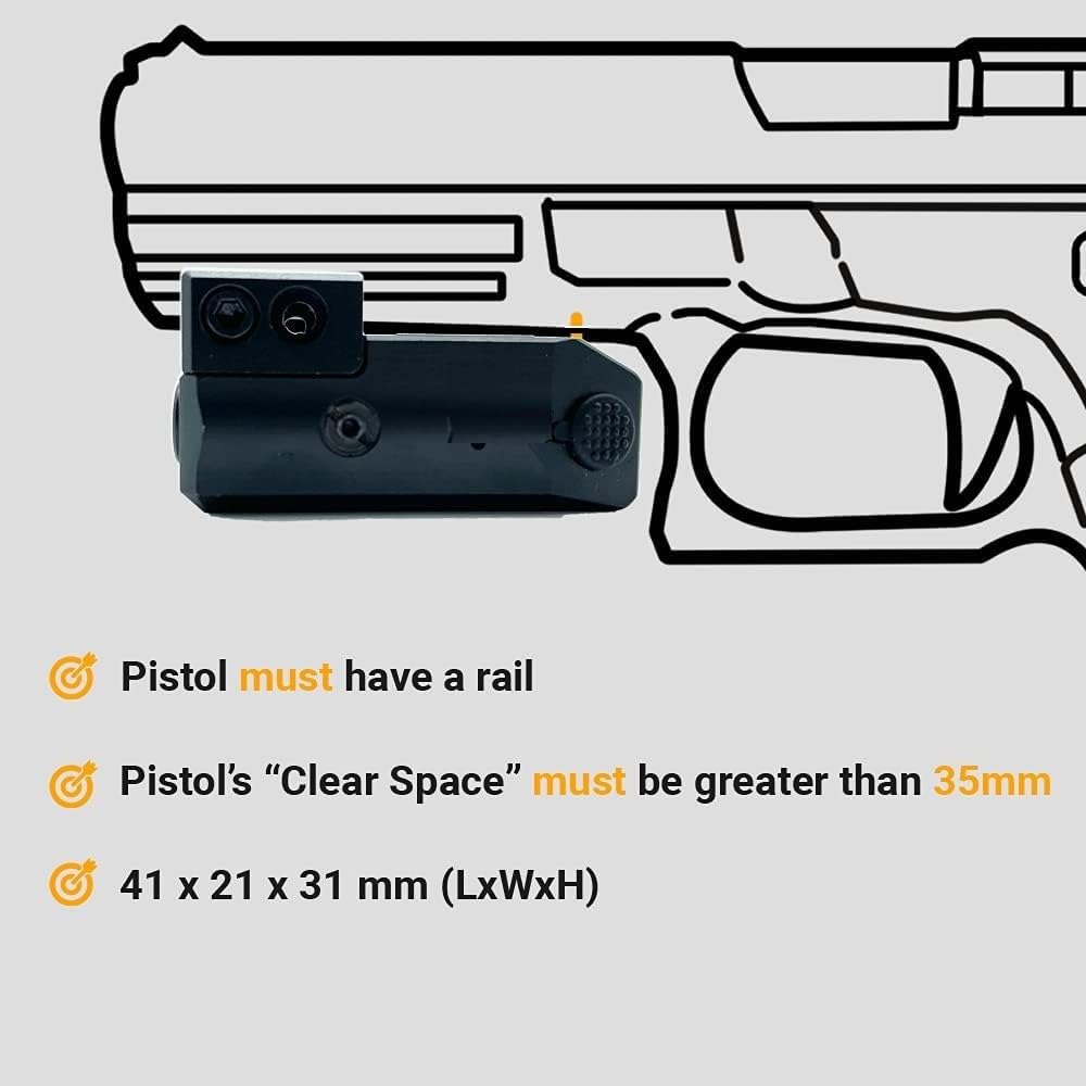 الأبعاد: TSBL صغير الحجم، بقياس 2.0 بوصة × 1.25 بوصة × 1.12 بوصة فقط ويزن 2.75 أونصة فقط. إنه مصمم لسهولة التركيب على حامل السكة، ولكن تأكد من أن معداتك تحتوي على 28 مم (1.1 بوصة) من المساحة الواضحة على الأقل كما هو موضح في الصورة للحصول على ملاءمة مثالية
