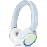 Keep kids entertained, connected, and safe with the Philips TAK4200 Kids' Wireless On-Ear Headphones. Designed especially for children, these headphones feature a volume limit of 75dB for home use and 85dB for travel, so parents can feel confident their kids are listening at safe levels. Colorful LED lights on the ear cups make listening fun, while the wireless audio sharing feature lets two kids connect and enjoy the same music, video, or game together. Soft cushions, an adjustable padded headband, and large buttons make them comfortable and easy for kids to use on their own. With up to 45 hours of playtime, these headphones are ready for long trips, study sessions, or everyday fun. A built-in microphone with noise reduction ensures clear calls with friends and family, and Bluetooth 5.4 multipoint connection makes it simple to pair with multiple devices. Durable and foldable, the Philips TAK4200 is built to handle kids' daily adventures while staying compact for travel. Parents can also manage settings like volume mode and playtime limits via the Philips Headphones app. Safe, fun, and designed for kids—these headphones deliver great sound, playful style, and peace of mind for parents.