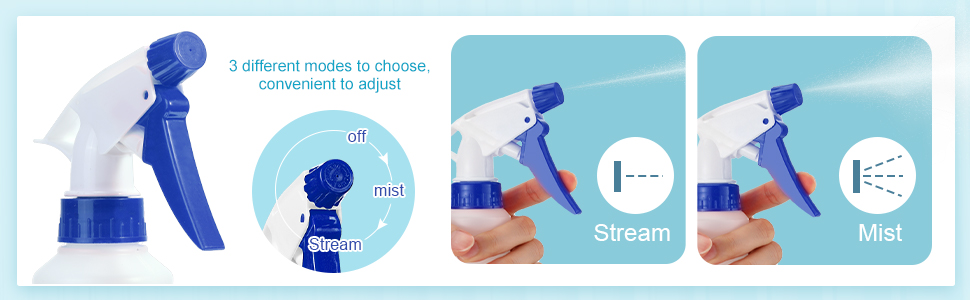 زجاجات رذاذ شديدة التحمل بفوهة قابلة للتعديل: تم تصميم زجاجات رذاذ الماء هذه بفوهة قابلة للتعديل، وهناك 3 أوضاع مختلفة: الإغلاق والرذاذ والتيار؛ سهلة التدوير والاستخدام، تذهب المصاصة مباشرة إلى الجزء السفلي من الزجاجة، لتجنب الهدر والرش؛ توفير الراحة لحياتك
