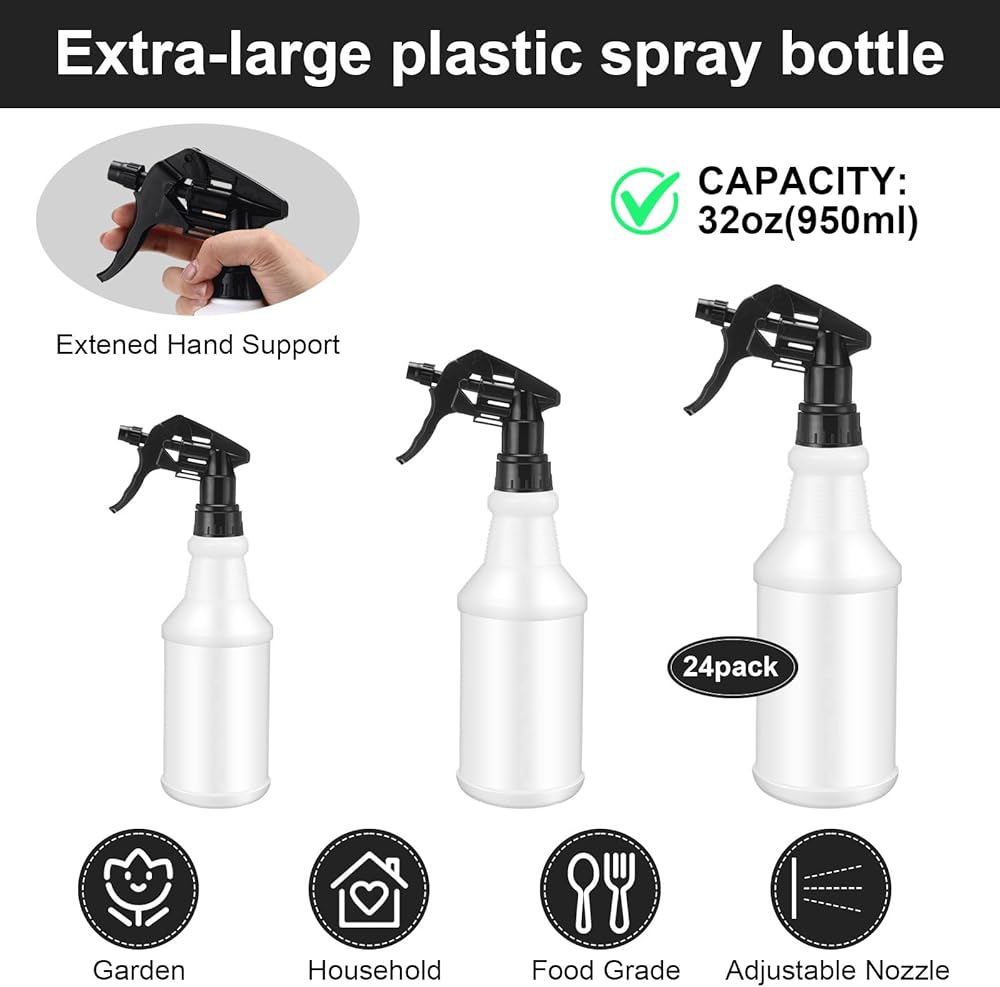 مجموعة زجاجات رذاذ ذات قيمة كبيرة: سوف تحصل على 24 قطعة من زجاجات رذاذ الماء بسعة 32 أونصة (1000 مل)، و5 ملصقات ملصقات، و4 أقماع بلاستيكية، مزيج عملي ومحتوى غني لتلبية احتياجاتك في الاستخدام والاستبدال، ويمكنك أيضًا مشاركتها مع أصدقائك. الأصدقاء أو العائلة