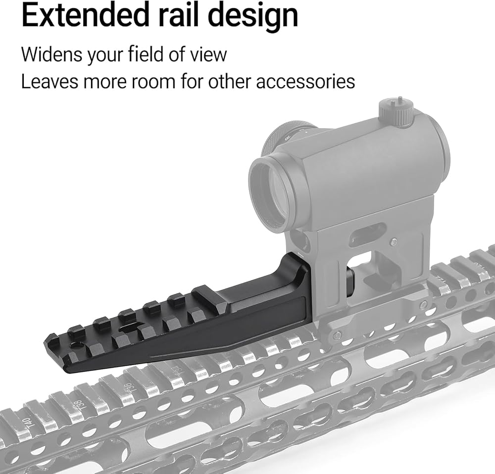 يمكن تركيب سكة تمديد Red Dot Riser Mount على السكة جنبًا إلى جنب مع القاعدة، مما يترك مساحة أكبر للملحقات الأخرى. البناء قوي وسهل التركيب. إنه يحمل نطاق النقطة الحمراء في مكانه بشكل آمن، مما يضمن هدفًا ثابتًا عند الاستخدام. يعد الحامل خيارًا عمليًا لأولئك الذين يتطلعون إلى توسيع خيارات معداتهم