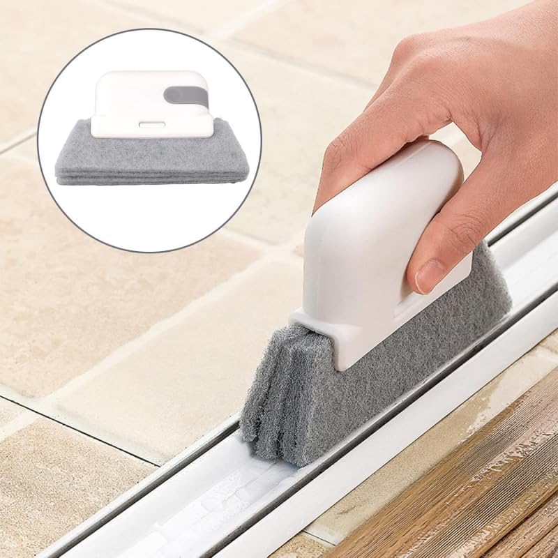 Window Track Cleaning Brush 3-in-1, Multi-Purpose Groove Brush with Replaceable Head, Window Sill & Sliding Door Track Cleaner for Tiles, Blinds, Car Vents, Corners & Small Spaces