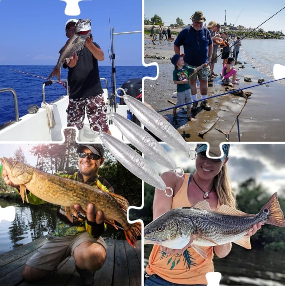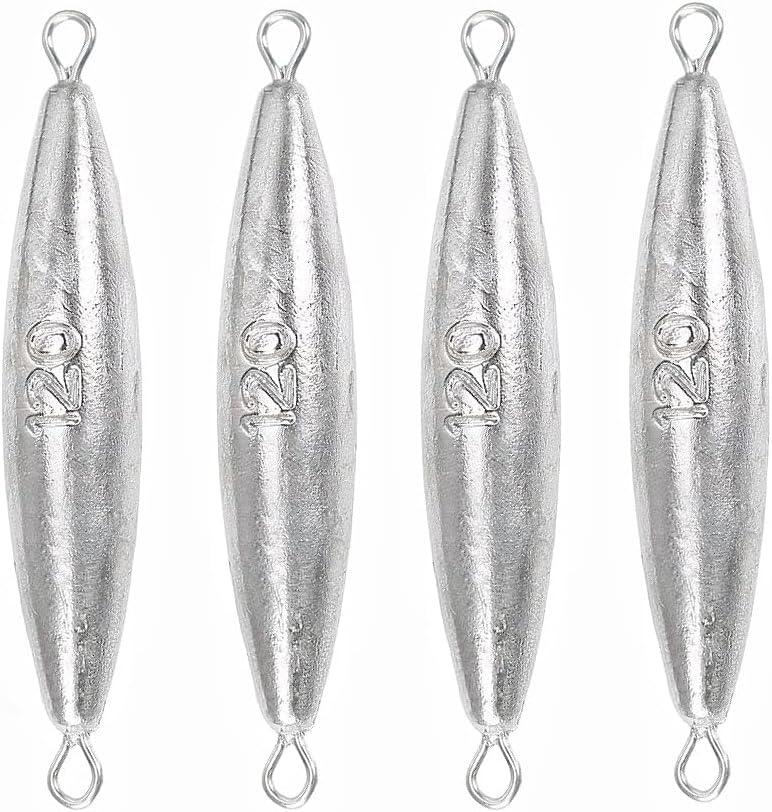 The inline trolling sinker is the go-to sinker for almost all saltwater fishermen.The weights range from 0.7oz to 4.23oz, allowing you to choose the suitable weight according to your needs. There are 9 different sets of fishing weight kits for you to choose from: 0.7oz(20g)-10PCS, 1oz(30g)-10PCS, 1.4oz(40g)-8PCS, 1.76oz(50g)-8PCS, 2.1oz(60g)-8PCS, 2.47oz(70g)-6PCS, 2.82oz(80g)-6PCS, 3.53oz(100g)-4PCS, 4.23oz(120g)-4PCS.