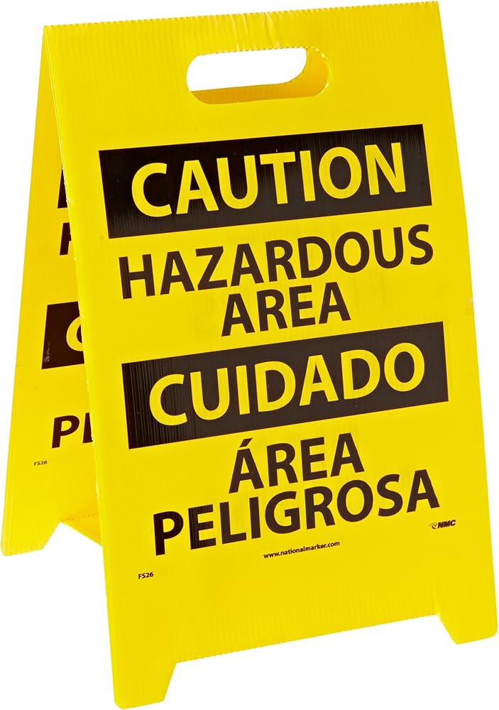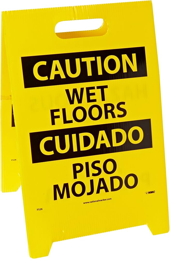 لافتة أرضية مزدوجة الجوانب NMC FS26، Legend "تحذير - منطقة خطرة على الأرضيات الرطبة"، طول 30.48 سم × ارتفاع 50.8 سم، كوروبلاست، أسود على أصفر