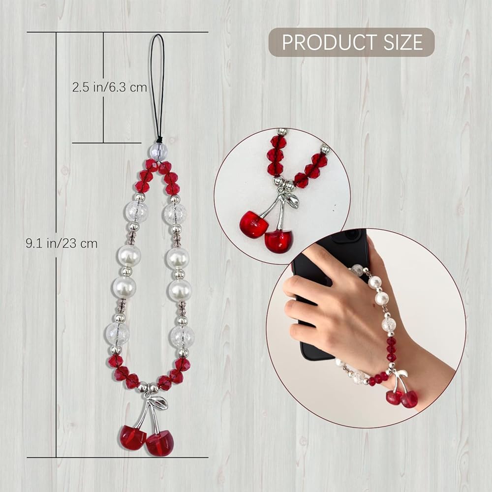 خامة فائقة الجودة: مصنوعة من خرز أكريليك عالي الجودة ومواد سبيكة، حلية الهاتف الكرز اللطيفة متينة وتدوم طويلاً. سطحه اللامع والأملس مقاوم للبهتان، بينما يضمن الحبل القوي بقاءه سليمًا