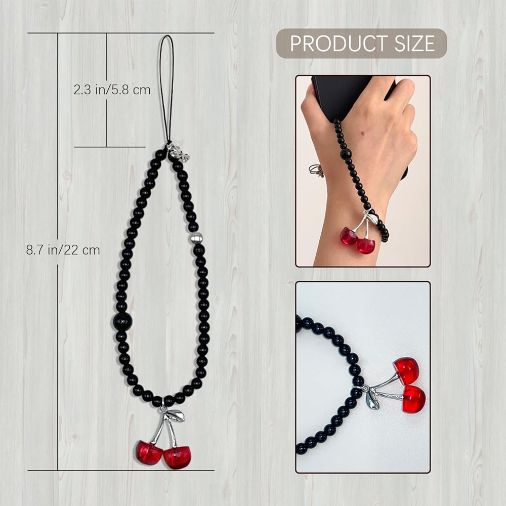 تصميم أنيق: ابق عصريًا وأنيقًا مع حبال الهاتف الكرزية هذه، مثالية لتعزيز جاذبية هاتفك بأجواءه العتيقة والشبابية. تضيف الألوان الأحمر والأسود والأبيض لمسة من الرقي إلى جهازك