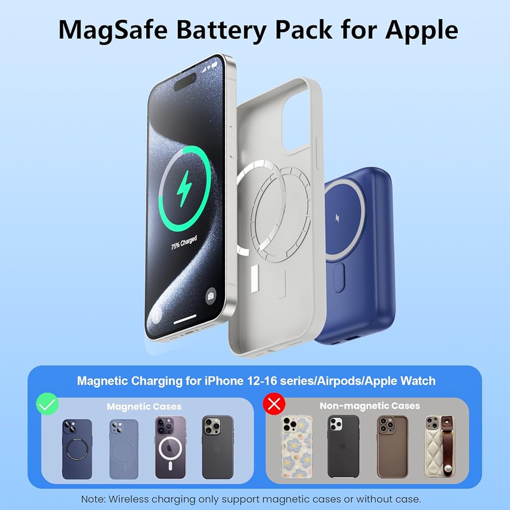 【الرفيق المثالي للسفر مع ضمان لمدة عامين】مصمم لأسلوب الحياة أثناء التنقل. تصميمه المدمج وخفيف الوزن ومناسب للجيب يجعله مثاليًا للسفر أو الرحلات الجوية أو العمل أو التنقلات اليومية. بالإضافة إلى بنك الطاقة المغناطيسي المحمول نفسه، ستحصل على كابل USB-C ودليل مستخدم وضماننا الشهير لمدة 24 شهرًا، مدعومًا بخدمة عملاء ودودة.