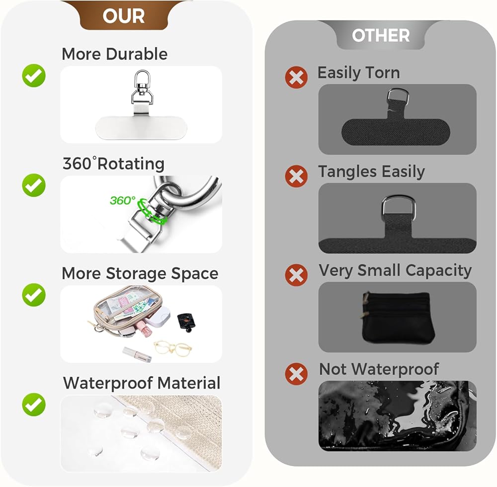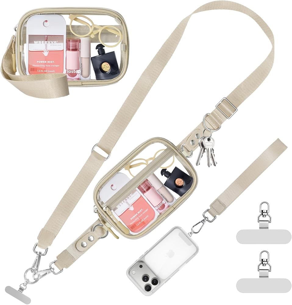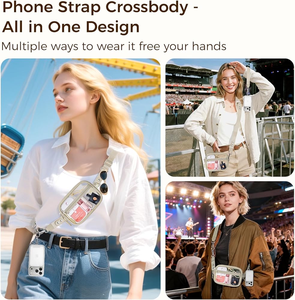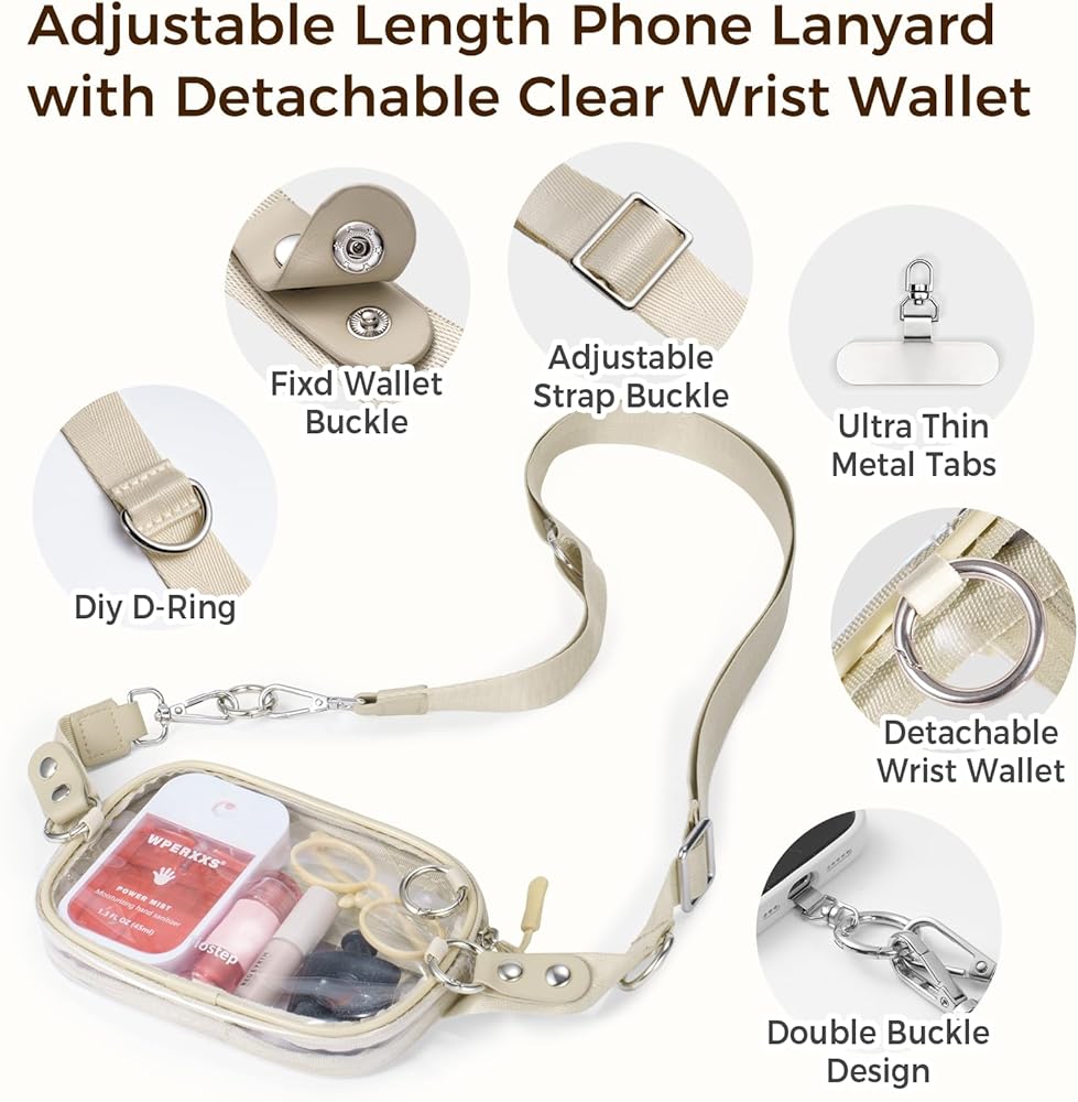 حقيبة حزام Clip and Go: يمكن استخدام حزام المشبك والذهاب هذا للهاتف مع المحفظة كحزام هاتف حول الجسم أو تفكيكه في حبل رقبة الهاتف ومجموعة محفظة المعصم، أو استخدامه كحبل معصم مستقل للهاتف. تصميمها الأنيق والمحمول مع محفظة جيب شفافة يجعلها ملحقًا أساسيًا للاستخدام اليومي والسفر وأحداث الاستاد والحفلات الموسيقية والمزيد. احمل حبل الهاتف هذا مع حقيبة شفافة بسحاب لتتمكن من تخزين ضرورياتك اليومية بسهولة، وخفيفة أثناء السفر!