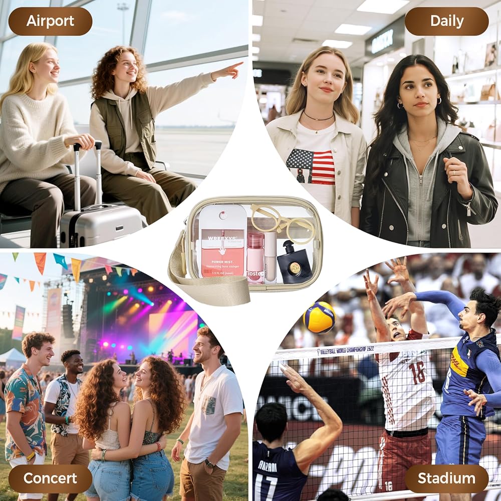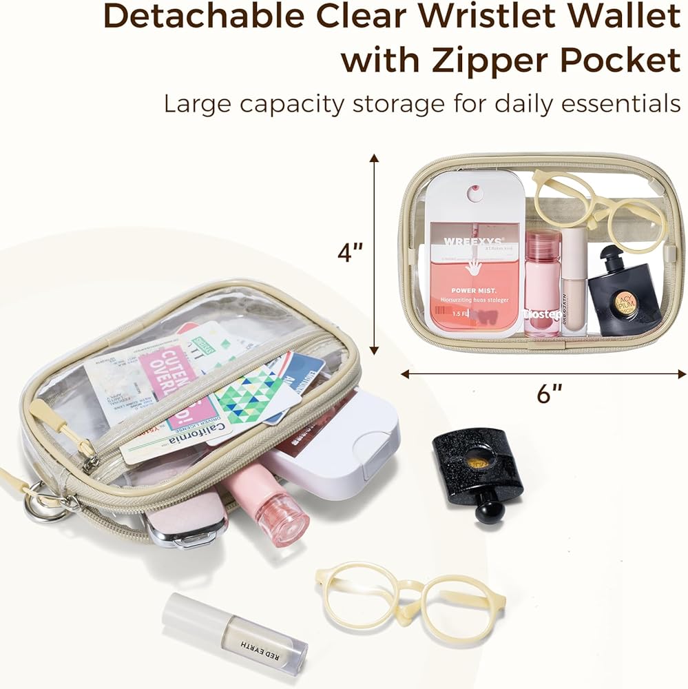 محفظة شفافة قابلة للفصل: هذه المحفظة الشفافة مصنوعة من مادة PVC المقاومة للماء، يمكن ارتداء هذه الحقيبة الصغيرة كحقيبة صدر حول الجسم أو حقيبة خصر مع الحزام، أو كمحفظة معصم مع حزام المعصم. يمكن للحقيبة الشفافة المزودة بسحاب أن تحتوي على الضروريات مثل أحمر الشفاه والنقود ومستحضرات التجميل وسلاسل المفاتيح والمزيد. يسمح التصميم الواضح بالتعرف السريع والسهل على المحتويات بالداخل. أنيق ومتعدد الاستخدامات، فهو يكمل أي ملابس.