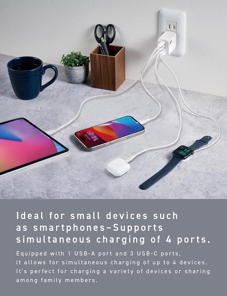 The CIO NovaPort QUAD II 65W GaN USB-C Charger Block is a compact and efficient solution for charging multiple devices. Featuring 3 USB-C ports and 1 USB-A port, it delivers up to 67W output from a single USB-C port and supports 65W across all ports, making it ideal for laptops, smartphones, and tablets. Built with advanced GaN technology, this 65W USB-C power adapter provides high efficiency and reduced heat in a lightweight design. Its Nova Intelligence technology optimizes power distribution for connected devices, while NovaSafety 2.0 monitors temperature to prevent overheating, ensuring safe, reliable charging. Designed for portability, this USB-C travel charger features a foldable plug, making it easy to pack for travel or daily use. The durable, scratch-resistant finish enhances longevity, while the charger's compatibility extends to a wide range of devices, including MacBooks, iPads, iPhones, Android smartphones, gaming consoles, and more. About the size of an egg, this is one of the smallest cell phone wall chargers available. Whether you're looking for a gan charger, a 65 watt USB C charger, or a 65W wall charger, the CIO NovaPort QUAD II delivers reliable performance. It's the perfect travel charger USB-C for home, work, or on-the-go power needs.