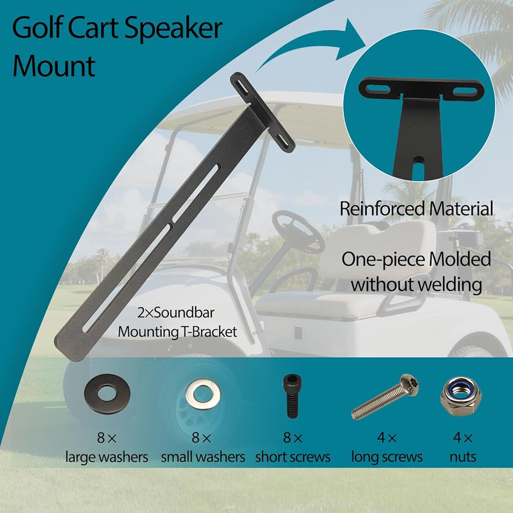 【تتمتع دعامة مكبرات الصوت لعربة الجولف بتوافق واسع】تم تصميم دعامة حامل مكبرات الصوت لعربة الجولف هذه خصيصًا لإعدادات الصوت لعربة الجولف، وهي مناسبة تمامًا لأشرطة الصوت SE18 وSE26 وSEB26 وSEDS32 وتعمل بمثابة دعامة مخصصة لشريط الصوت لتتناسب مع احتياجات تركيب مكبرات الصوت. إنه يزيل متاعب المحول، ويحمل أشرطة الصوت بشكل آمن لتتماشى مع تصميم عربة الجولف الخاصة بك، سواء كنت تستخدم شريط مكبر صوت مدمج أو قياسي لعربة الجولف.