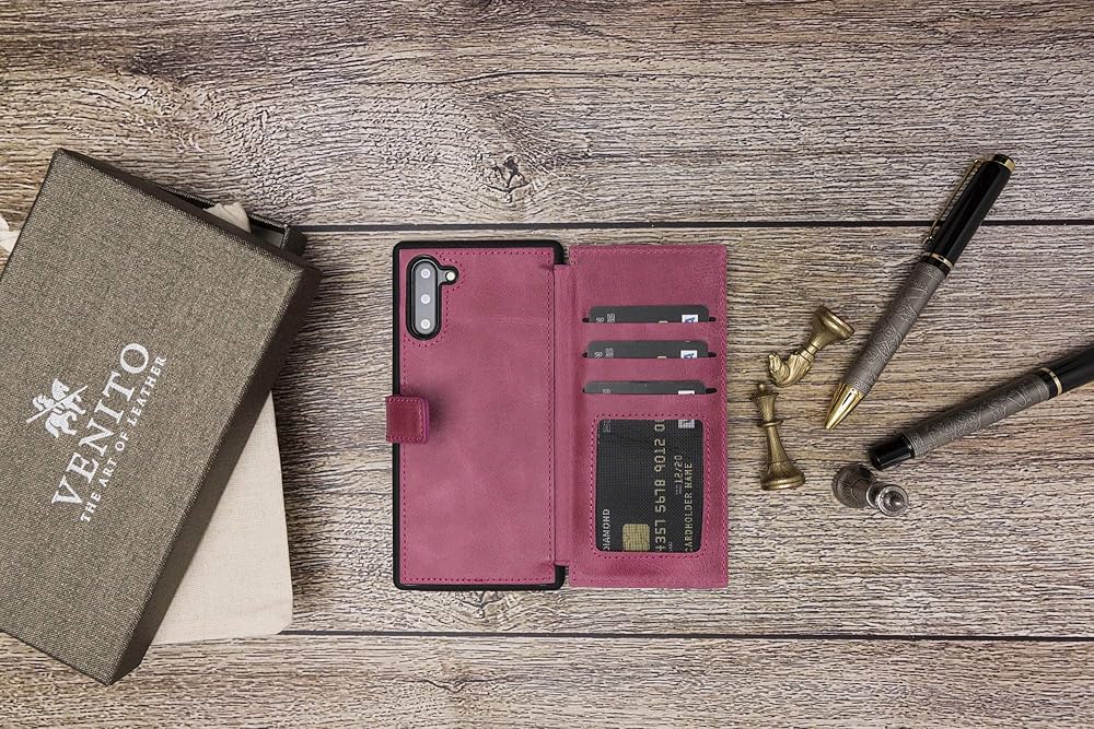 • COMPATIBILITY | Verona Handcrafted Premium Leather Snap-On Flip Back Cover Slim Wallet Phone Case is compatible with Samsung Galaxy Note 10 (6.3 inch). Please make sure you order the right size case for your phone. This case doesn't fit either Galaxy Note 10 Plus (6.8 inch) or Galaxy S10 (6.1 inch)