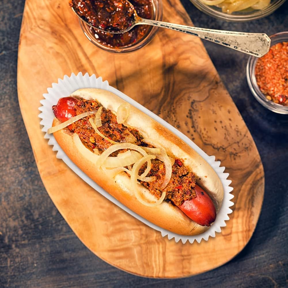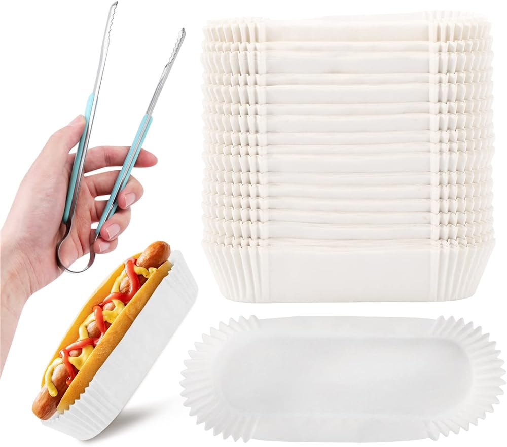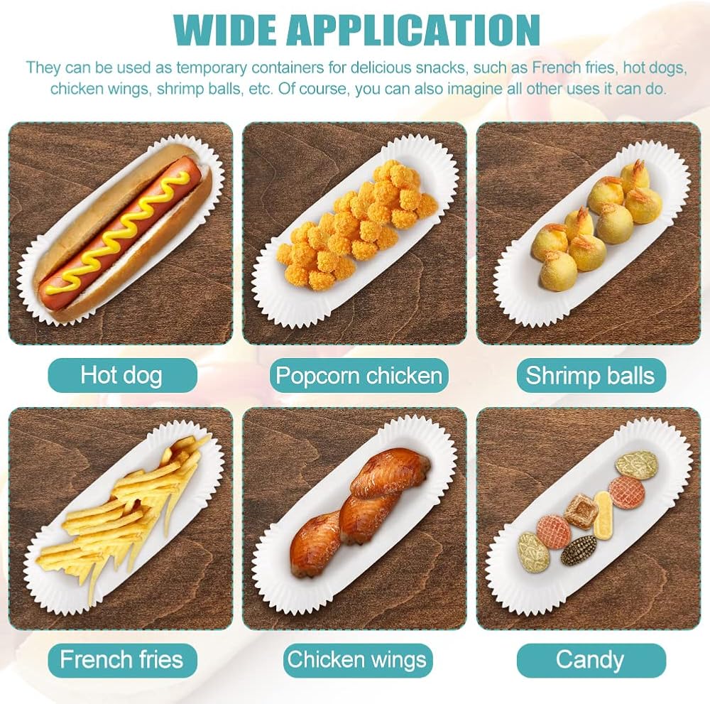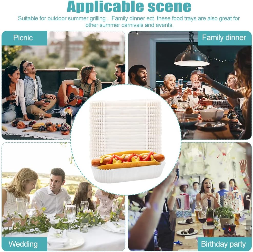 【تقديم الكلاب الساخنة】توفر صواني الكلاب الساخنة ذات الورق الأبيض مقاس 13.97 سم طريقة جيدة لخدمة الكلاب الساخنة على حامل تنازلك أو منتزه الكرة أو الخروج.