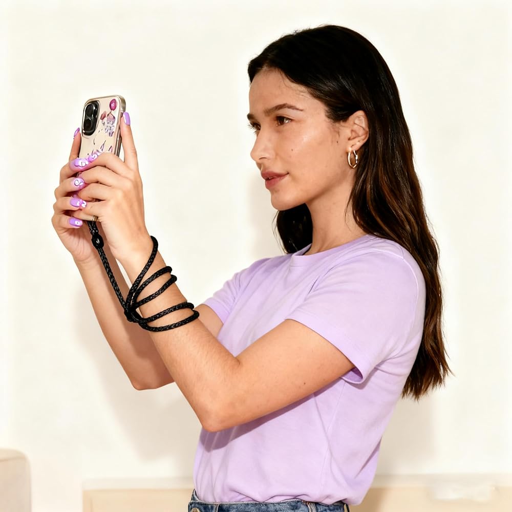 Upgraded for Durability: Features a reinforced strap and sturdy hardware for long-lasting use. Includes 2 stainless steel phone adapters with a 360° swivel for a secure, tangle-free connection.