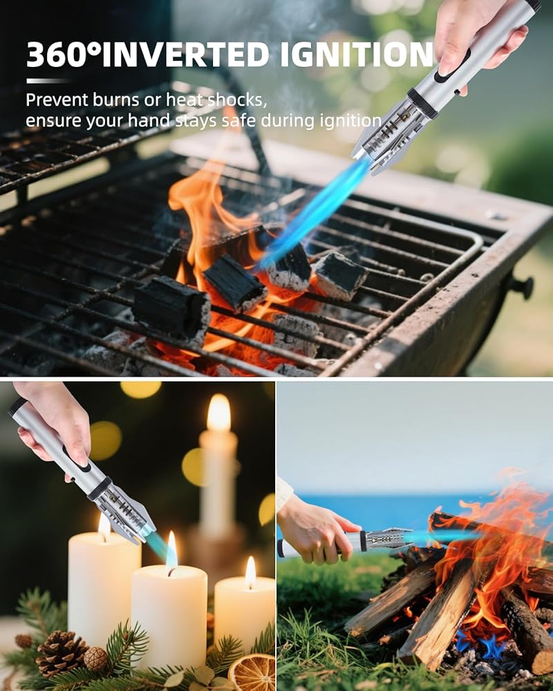 【ولاعة متعددة الأغراض】تتميز ولاعة البيوتان القابلة للتعديل هذه بإشعال إلكتروني تلقائي بالكامل وإشعال بيزو مدمج لسهولة الاستخدام. مثالية للشموع وشوايات الشواء والتخييم والألعاب النارية، فهي تتفوق في الداخل والخارج.