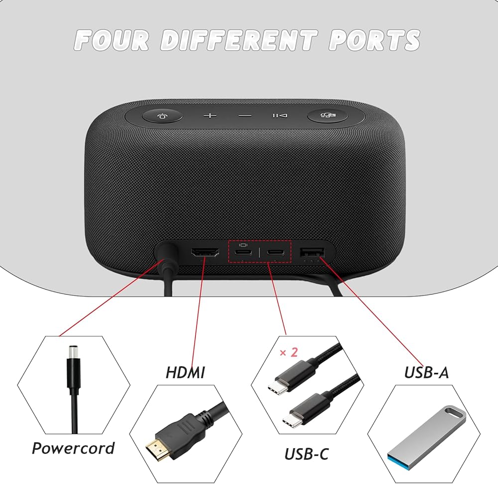 قاعدة صوت 2 في 1 لمنصة صوت Microsoft - منصة صوت Microsoft Teams تصل إلى 90 ديسيبل SPL - تدعم وضع DP alt - صفيفان من الميكروفونات متعددة الاتجاهات تصل إلى شاشة مزدوجة، Windows 11/10، MacOS