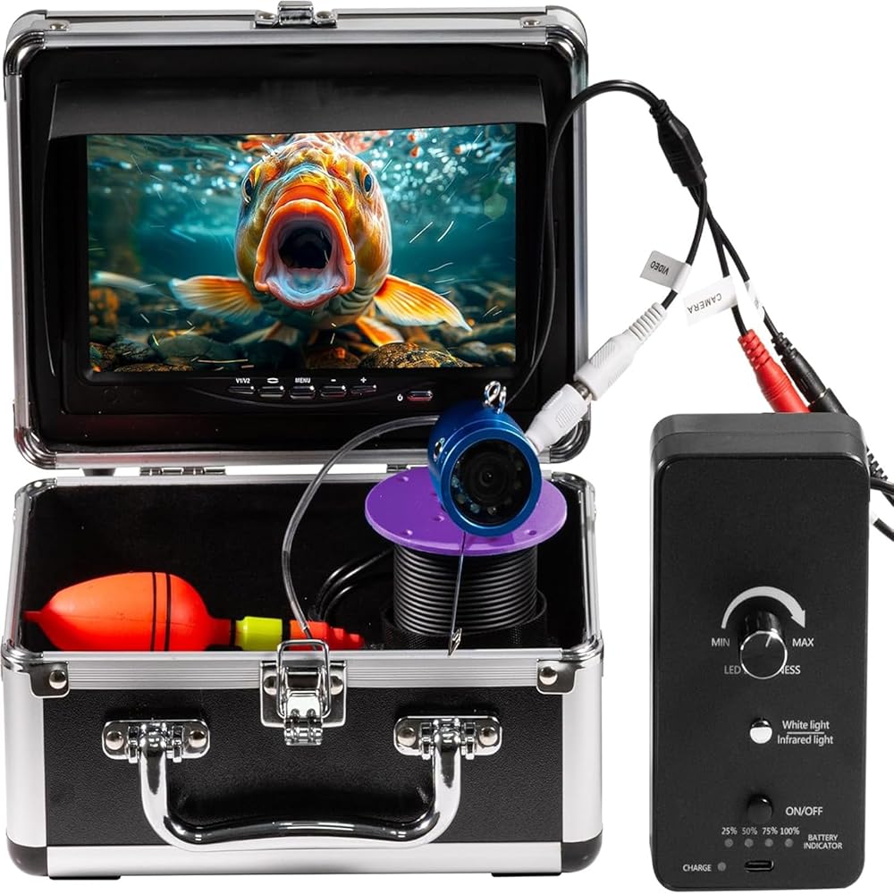 【ما ستحصل عليه: شاشة مكتشف السمك 1 × 7 بوصات، 1 × مظلة شمسية، 1 × كاميرا عين السمكة (مع كابل بطول 92 قدمًا)، 1 × بكرة كابل، 1 × كابل شحن، 1 × صندوق التحكم في الطاقة، 1 × طافية، 6 × مشابك بيضاء، 1 × مشابك خطافية، 1 × دليل المستخدم، 1 × حقيبة حمل محمولة من الألومنيوم.