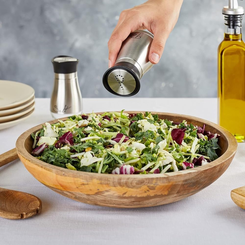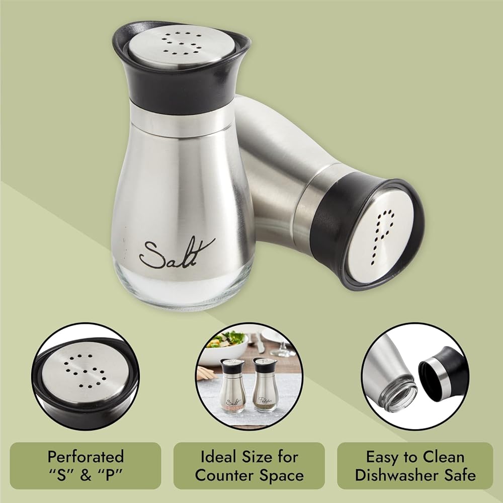 تعد مجموعة رجاجات الملح والفلفل المكونة من قطعتين إضافة ممتازة لأي طاولة مطعم أو طاولة غرفة طعام أو كديكور لطاولة المطبخ. تجنب متاعب إزالة الغطاء باستمرار لفحصه. من السهل معرفة متى تنخفض هزازات التوابل المصنوعة من الستانلس ستيل بفضل الجزء السفلي الزجاجي. تتميز الهزازات الأنيقة بثقب "P" و"S" على الأغطية. كل حاوية 4 انش تحمل ما يصل إلى 4 اونصة (118 مل) من التوابل. سواء كنت بحاجة إلى رشة من الفلفل أو رش الملح، فإن هزازات الملح والفلفل الفريدة هي رفيقك المثالي في المطبخ. في حين أن المجموعة آمنة للغسل في غسالة الأطباق، نوصي بالغسيل اليدوي بصابون خفيف وتجفيفها بالهواء. ملاحظة: الملح والفلفل غير متضمنين.