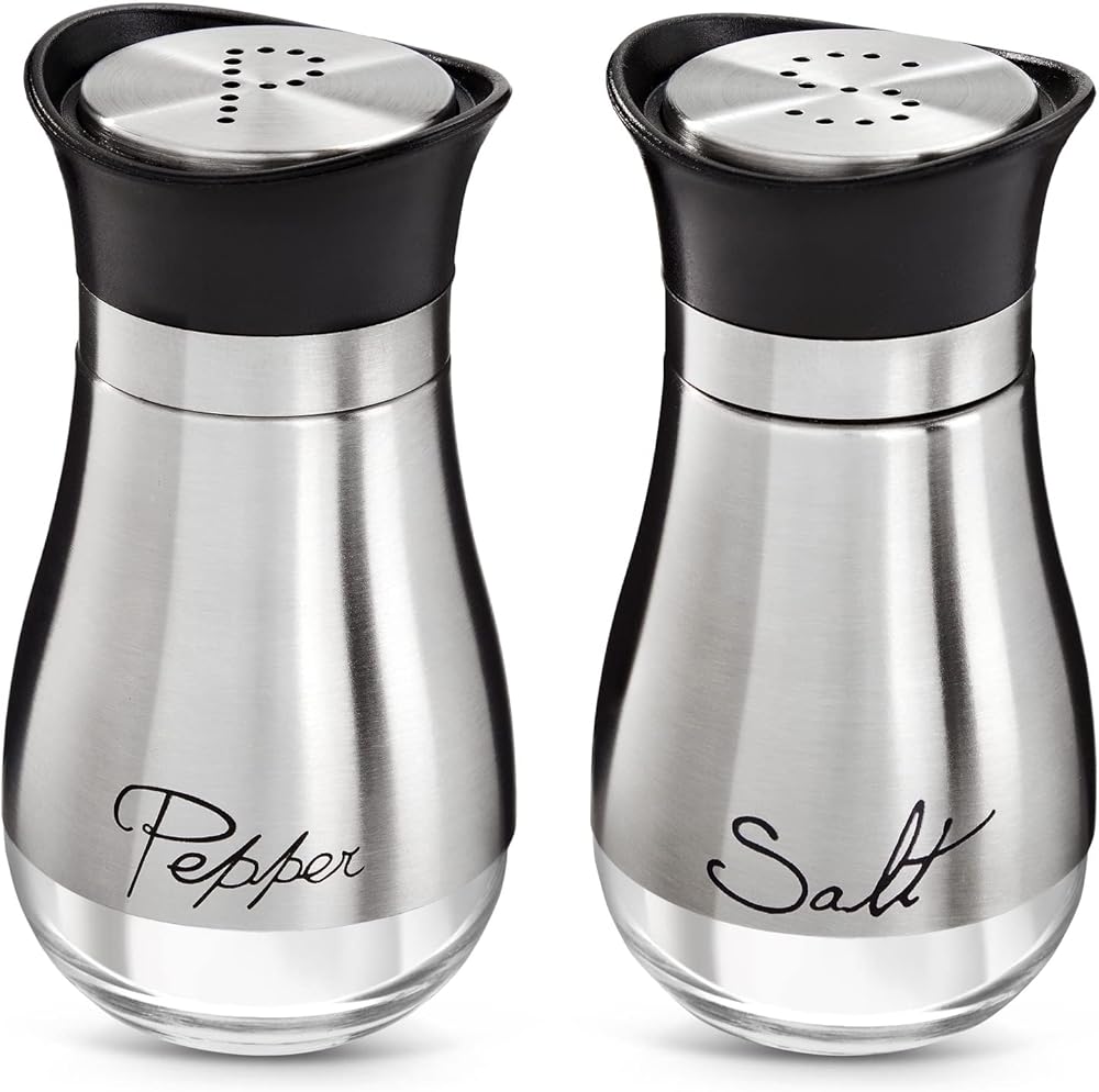 مجموعة هزازات الملح والفلفل المصنوعة من الستانلس ستيل: إن هزازات التوابل القابلة لإعادة الملء مصنوعة من الستانلس ستيل عالي الجودة مع قاعدة زجاجية تساعد على التحقق من انخفاض الهزازات، وتجنب متاعب إزالة الغطاء باستمرار