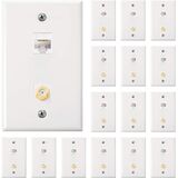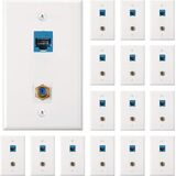 16 Pieces Cat 6 Ethernet Wall Plates, Cat 6 Coax Wall Plate with Ethernet Port and Gold-Plated TV Coax F-Type Port