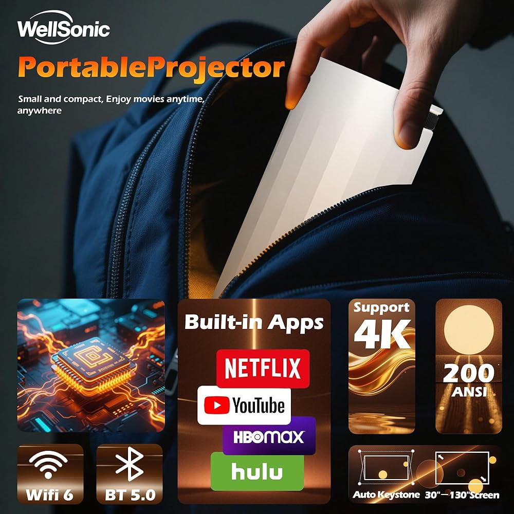 مقاطع فيديو مدمجة: يوفر جهاز العرض الذكي هذا وصولاً سلسًا إلى 1,000,000 مقطع فيديو رائع بنقرة واحدة فقط. كما أنه يدعم الوصول السريع إلى التطبيقات الخارجية السائدة مثل Netflix وYouTube، مما يلبي بسهولة الاحتياجات السمعية والبصرية المتنوعة