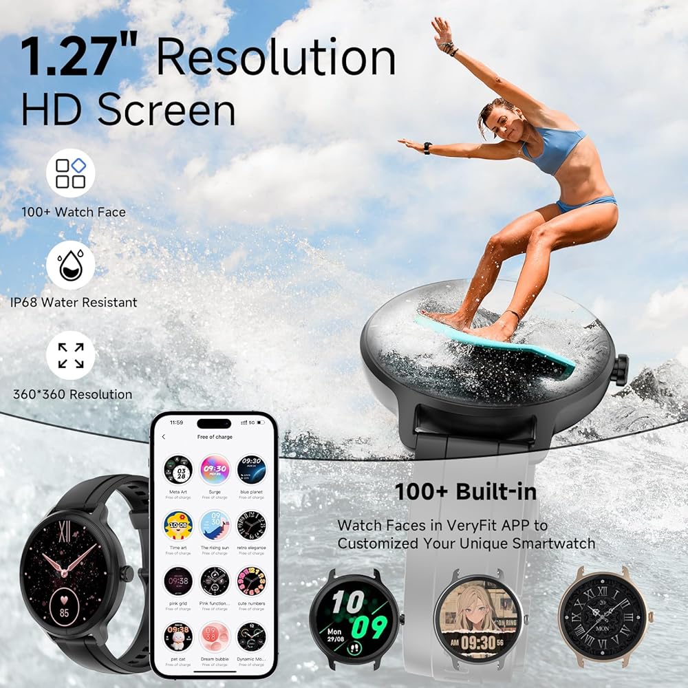 وجوه ساعة متعددة، استخدام متعدد الاستخدامات: تتميز ساعة بروتكبيتس الذكية متعددة الوظائف بشاشة مستديرة عالية الدقة مقاس 1.27 بوصة تعمل باللمس بالكامل لتجربة بصرية ممتازة. يمكنك تحميل صورك المفضلة كواجهات للساعة أو تنزيل أنماط مختلفة من تطبيق Veryfit، وتغييرها وفقًا للمناسبات المختلفة - أنيقة وعصرية.