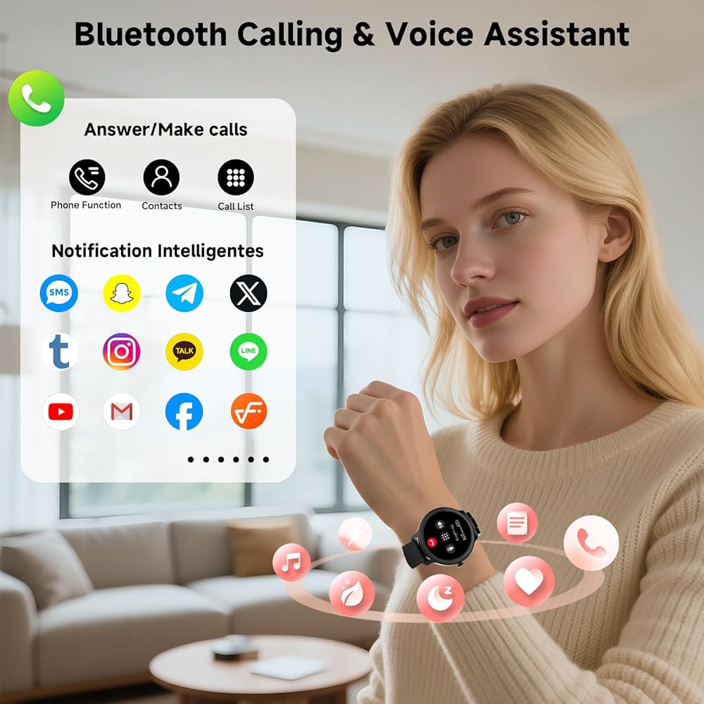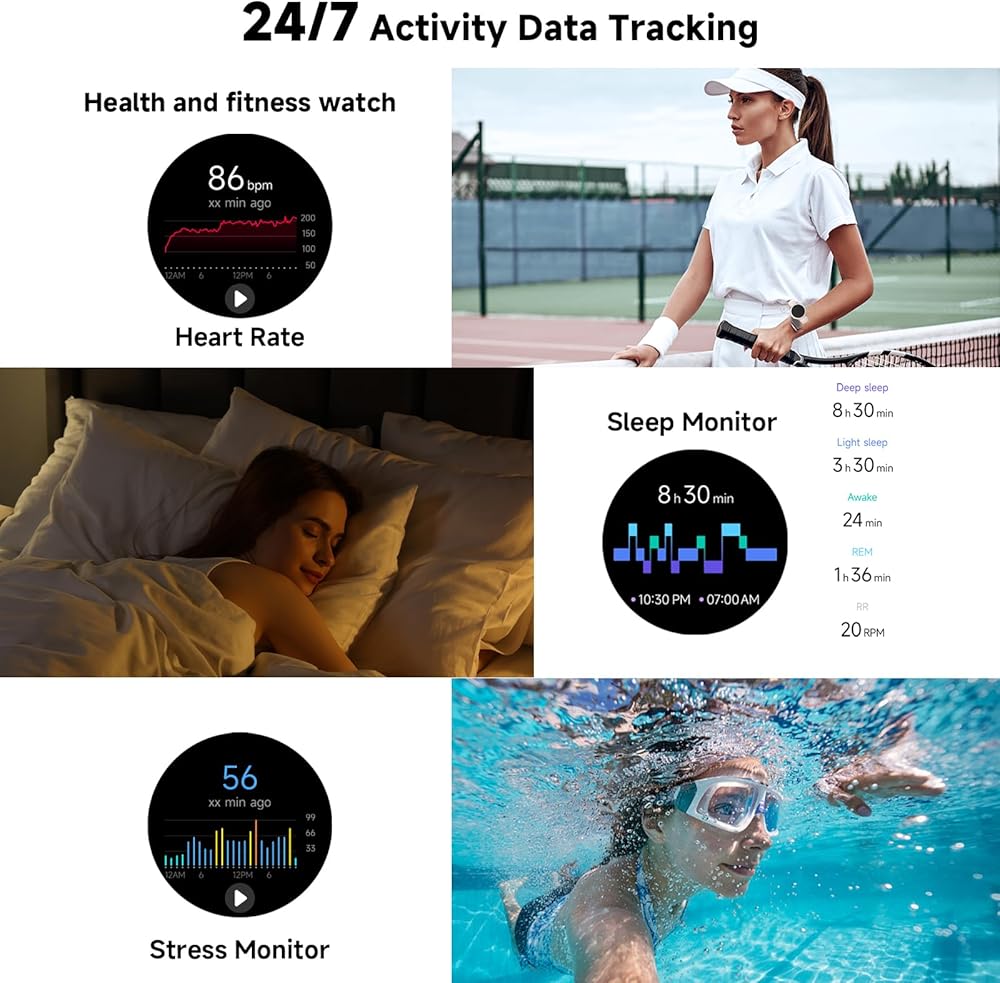 تتبع الصحة على مدار الساعة طوال أيام الأسبوع: تستخدم الساعة الذكية النسائية أجهزة استشعار متقدمة لمراقبة معدل ضربات القلب ومستويات الأكسجين في الدم ومستويات التوتر وجودة النوم (النوم الخفيف/النوم العميق/حركة العين السريعة)، ودورة الحيض الأنثوية (لأغراض غير طبية) على مدار الساعة. يمكن مزامنة جميع البيانات المسجلة مع هاتفك لتحليلها وتتبع حالتك الصحية العامة وتوفير تنبيهات في الوقت المناسب في حالة اكتشاف أي خلل. فهو يساعدك على فهم التغيرات الجسدية بشكل أفضل، حيث يعمل بمثابة الوصي على صحتك الشخصية.