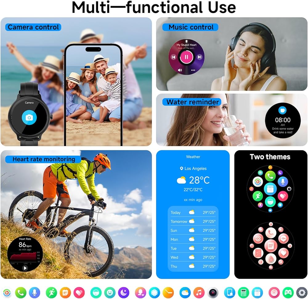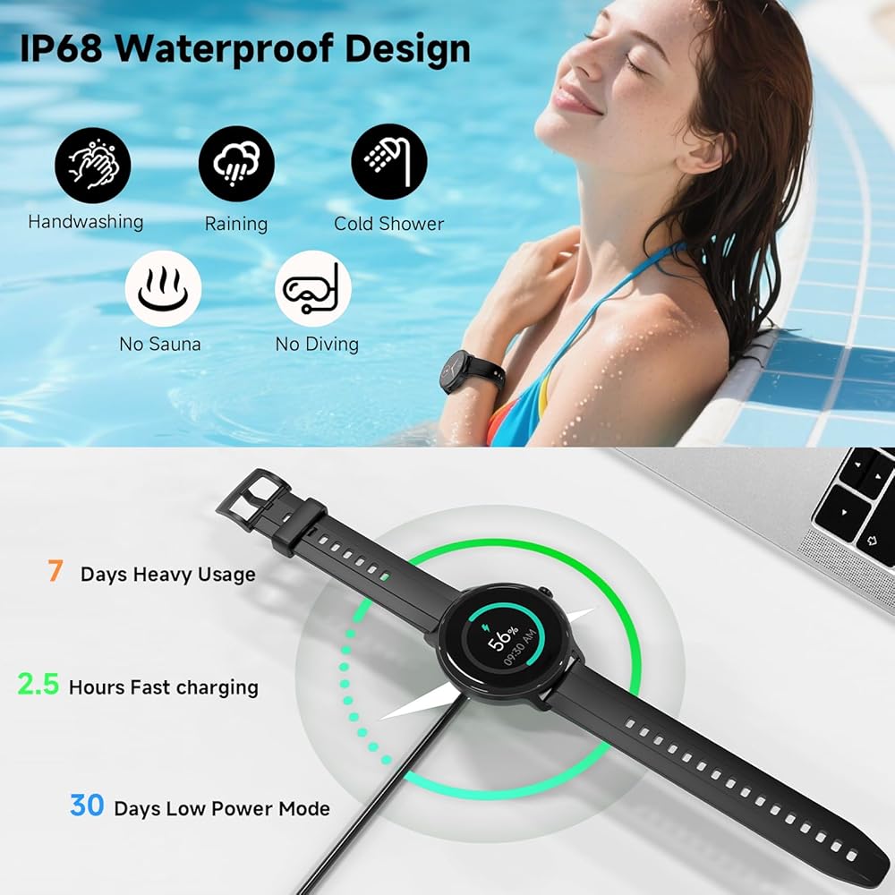 عمر بطارية طويل، وظائف كاملة: لا تتطلب هذه الساعة الذكية للجنسين سوى شحن لمدة ساعتين لأكثر من 7 أيام من الاستعداد. إنه يوفر العديد من الميزات اليومية الاختيارية، مثل إشعارات الرسائل، وتحديثات الطقس، والتحكم في الموسيقى، ومراقبة الضغط، وإعدادات التنبيه، وساعة التوقف، والمؤقت، والألعاب المصغرة، والتذكيرات المستقرة، وتوجيه التنفس، ووظيفة الرفع للاستيقاظ، ومكتشف الهاتف، والسطوع القابل للتعديل، والمزيد.