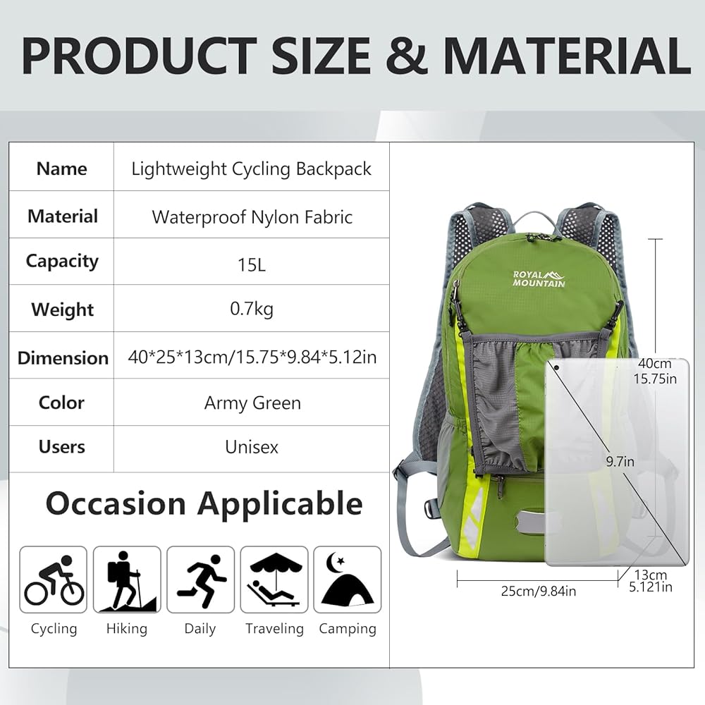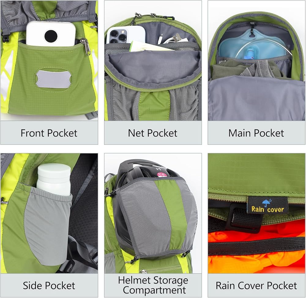 【حقيبة ظهر للمشي لمسافات طويلة للرجال والنساء】حقيبة الظهر خفيفة الوزن للدراجة تضمن تنظيمًا لا تشوبه شائبة. مع وجود مساحة وفيرة للإمدادات والمتعلقات الشخصية، فإنها تحافظ على كل شيء مرتبًا بشكل أنيق ويمكن الوصول إليه بسهولة طوال اليوم. إنها مناسبة جدًا للجميع لاستخدامها في الحياة اليومية.