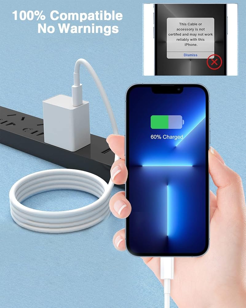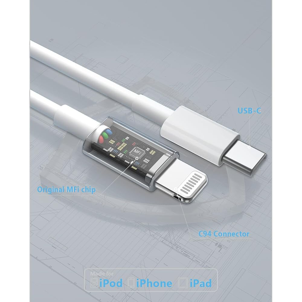 تدعم كابلات USB C إلى Lightning الشحن السريع القوي لأجهزة iPhone 14,13، 13 Mini، 13 Pro، 13 Pro Max iPhone 12، 12 Mini، 12 Pro، 12 Pro Max، 11، 11 Pro، 11 Pro Max، SE، X، XS، XR، XS Max، 8، 8 Plus، وiPad iPods Pro، 8th/2020، Pro 12.9 بوصة gen1/gen2، Pro 10.5"، Air3 10.5"، mini5 7.9"، iPod Touch الجيل الخامس، iPod nano الجيل السابع، والطرز اللاحقة الأخرى عند استخدام شاحن USB-C PD الخاص بك.