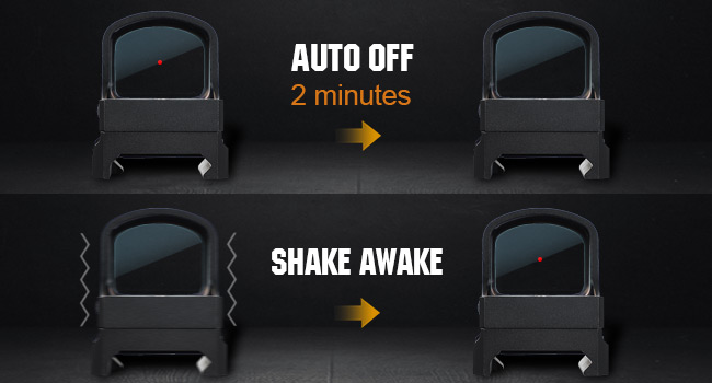 • 【10 إعدادات للإضاءة】هذه النقطة عبارة عن 10 إعدادات ساطعة، وتتضمن 8 مستويات و2 كثافة نقطة حمراء للرؤية الليلية. يتم استخدام الإعداد 1 و2 مع جهاز الرؤية الليلية. يرجى ضبط مستوى السطوع وفقًا لاحتياجاتك.