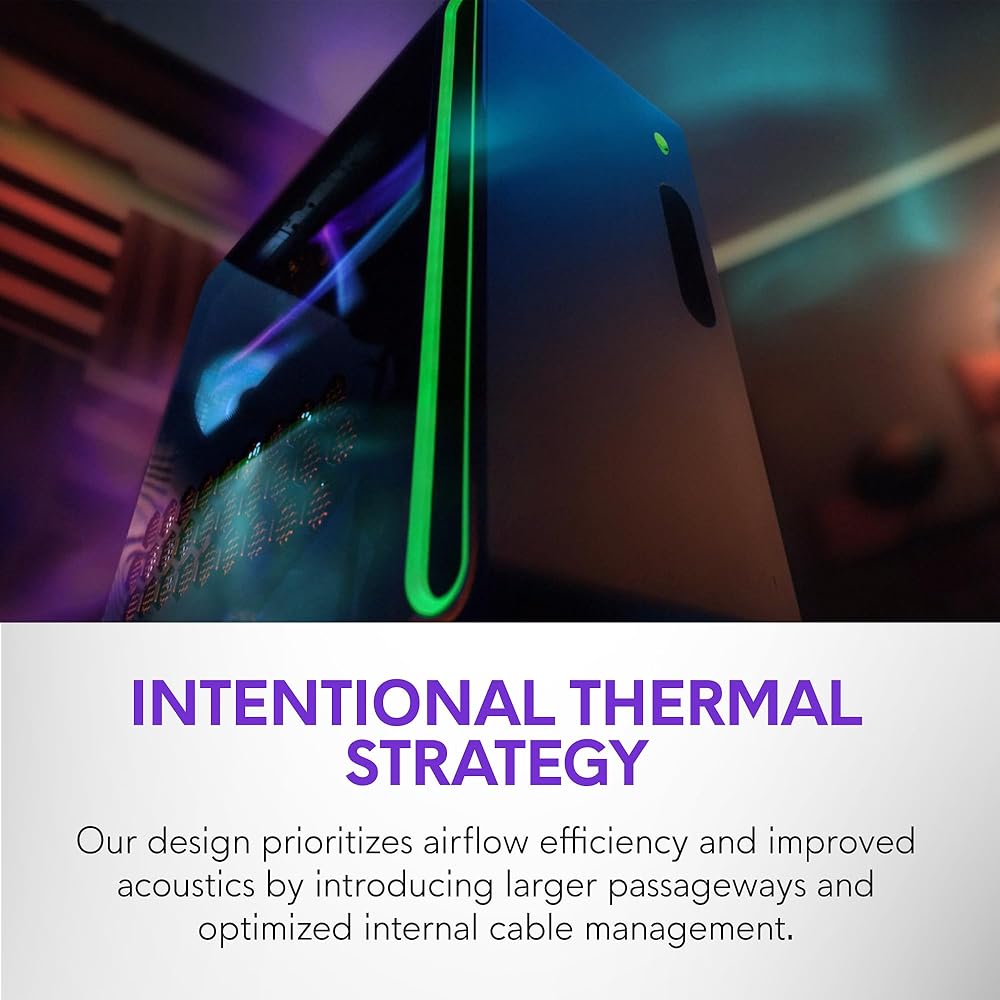 240mm heat exchanger: The 240mm heat exchanger, available on the optional CPU liquid cooling, heightens thermal resistance, ensuring temperatures stay consistently low during longer gaming sessions.