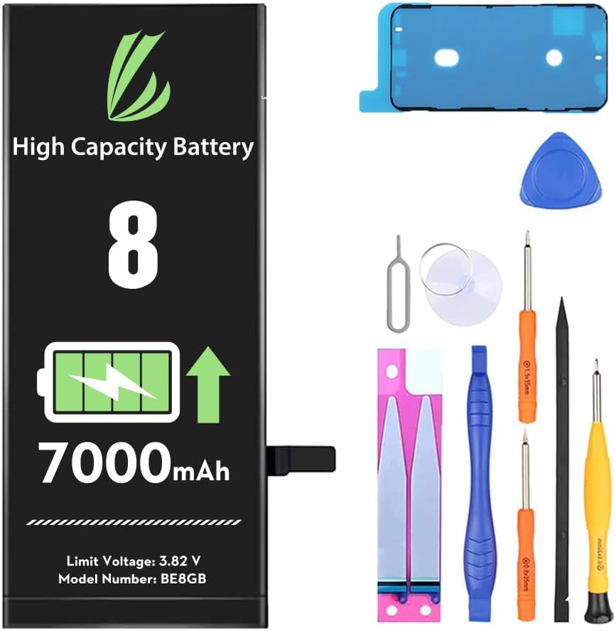 بطارية LL TRADER لهاتف iPhone 8، بطارية بديلة عالية السعة 7000 مللي أمبير في الساعة لهاتف iPhone 8، (A1863、A1905、A1906) مع مجموعة أدوات إصلاح كاملة 2025NEW