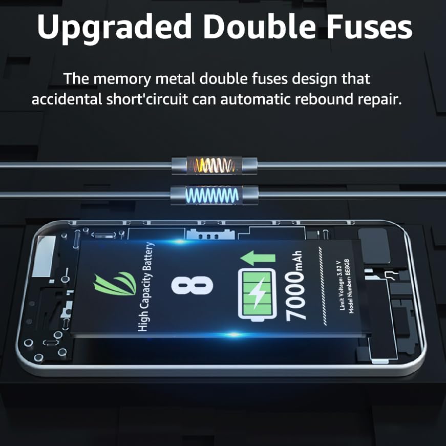 [سعة عالية] - سعة عالية 5000 مللي أمبير في الساعة، أكبر مما تمتلكه بطارية 8 الأصلية، مما يعني أنك لن تضطر إلى شحن هاتفك بشكل متكرر كما كنت من قبل.