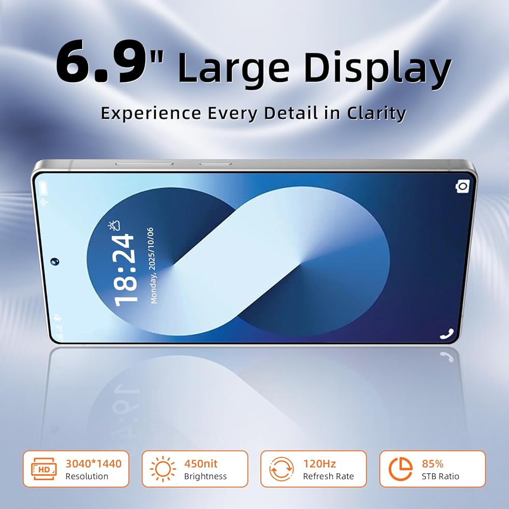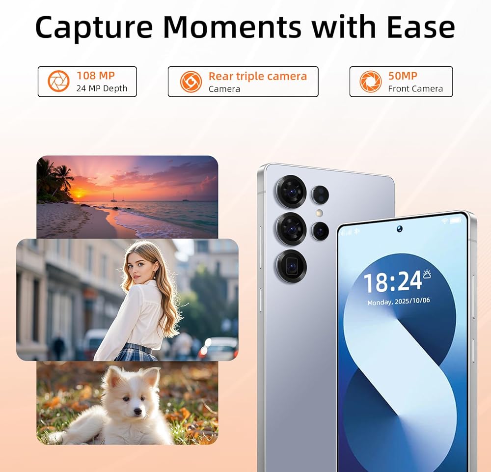 【6.9 HD+ Android 15.0】 هذا هاتف خلوي يعمل بنظام Android بشاشة كبيرة، شاشة 6.9 بوصة HD+ 1440*3040، هذا الهاتف غير المقفل الذي يعمل بنظام Android 15.0 S25 Ultra مجهز بكاميرا رئيسية بدقة 108 ميجابكسل وكاميرا أمامية بدقة 50 ميجابكسل، مما يؤدي إلى تسجيل حياة جميلة وعرض جمالك بشكل أفضل. كما أنه يحتوي على زر التعرف على الوجه وفتح زر بصمة الإصبع وزر سريع لالتقاط الصور، مما يحمي خصوصيتك بشكل فعال.