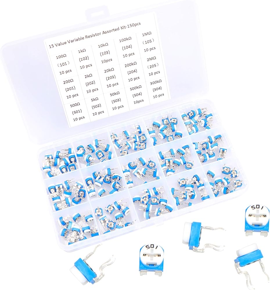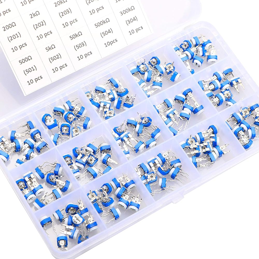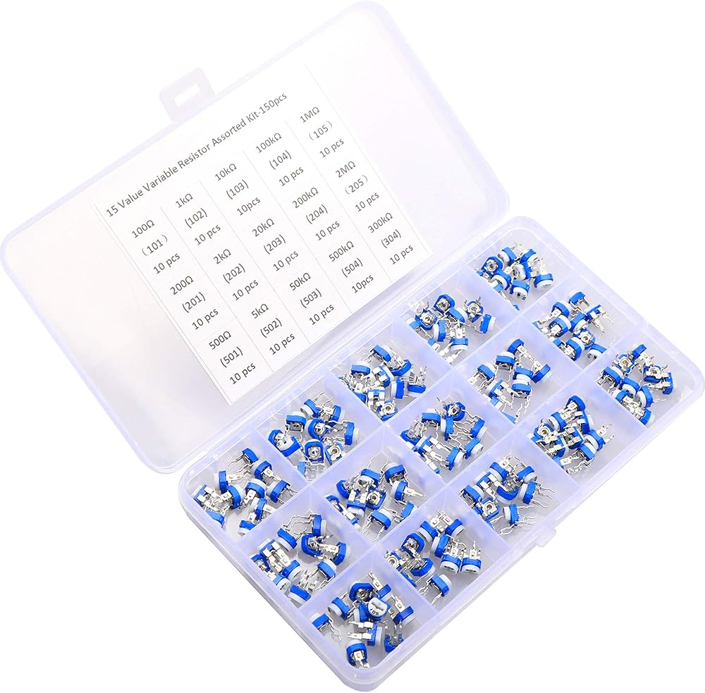 مجموعة متنوعة من 150 قطعة من 15 قيمة 100 إلى 2 متر من أوم المقاومة المتغيرة، دورة واحدة على شكل حرف T