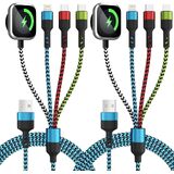 شاحن 4 في 2 بمنافذ مزدوجة من النوع C لأجهزة متعددة: كابل الشحن المتعدد 4 في 2 مجهز بمنفذ إدخال من النوع C/USB A وأربعة منافذ إخراج متوافقة مع DUAL Type-C وLigntning وiWatch على التوالي. كابل الشحن متعدد الوظائف هذا متوافق مع شواحن النوع C وUSB A، مما يجعله خيارًا متعدد الاستخدامات للأجهزة المختلفة (مصمم لسلسلة iWatch Series 2-10، وSE/Ultra، ومتوافق مع iPhone 16-11 والموديلات الأحدث، وalos لأجهزة iPad، وSamsung Galaxy S25-21، وAirpods، وشحن السيارة، وسماعات Xbox 360 وما إلى ذلك.) ملاحظة: ليس لساعة سامسونج!!! سلسلة Xbox X&S