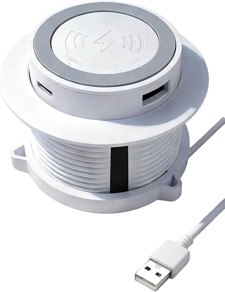 مجموعة واسعة من التطبيقات: محطة الشحن اللاسلكية للمكتب المنبثق مع منفذ USB A وUSB C مناسبة للمقاهي والمطاعم والحانات والمكاتب والمنازل وأماكن الترفيه وما إلى ذلك. لا توجد آثار على الطاولة، ابقِها نظيفة ومرتبة