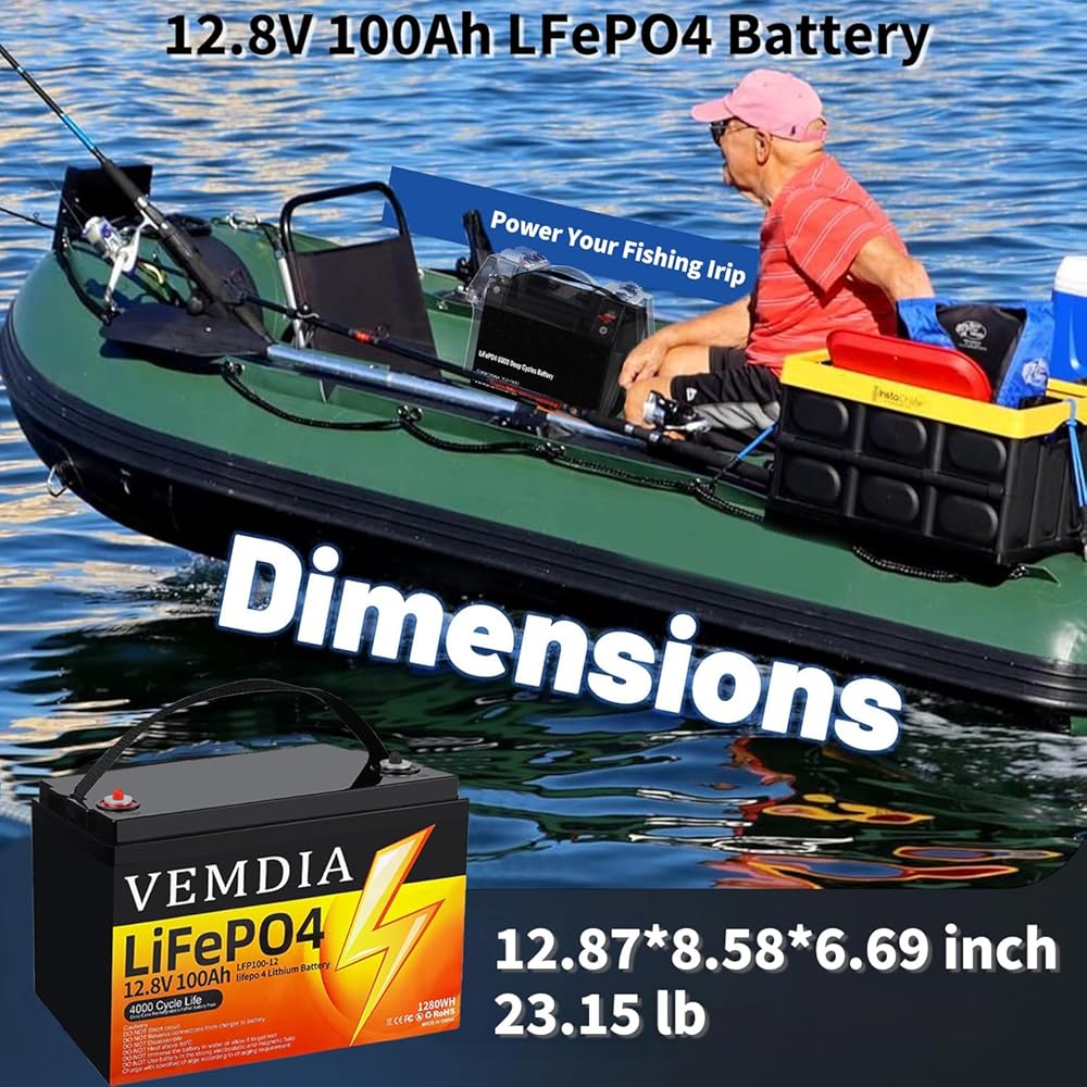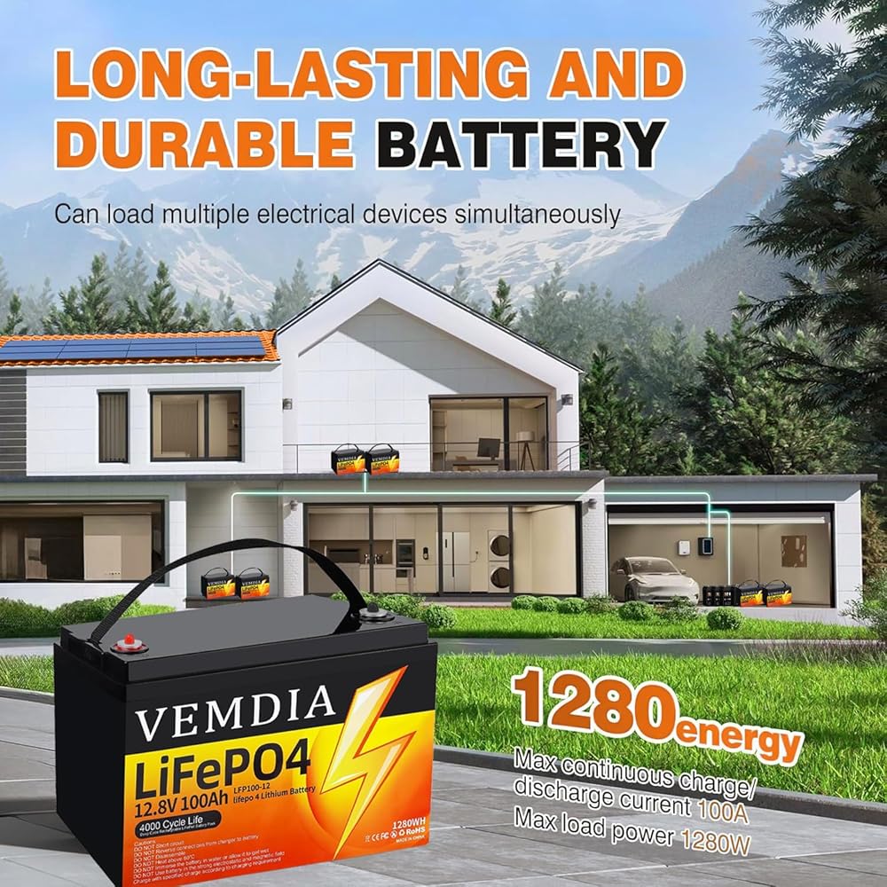 توسيع السعة والاستخدام على نطاق واسع - مجهزة بخلايا LiFePO4 المتميزة للتوصيل والتشغيل، توفر هذه البطارية جهدًا ثابتًا بجهد 12 فولت وسعة 100 أمبير، وشحن أسرع. يمكنه تشغيل الأجهزة حتى 1280 وات في الساعة، أو تشغيل محرك الصيد أو عجلات الطاقة أو الكرسي المتحرك أو سكوتر التنقل بسهولة، أو العمل كوحدة تخزين شمسية موثوقة.