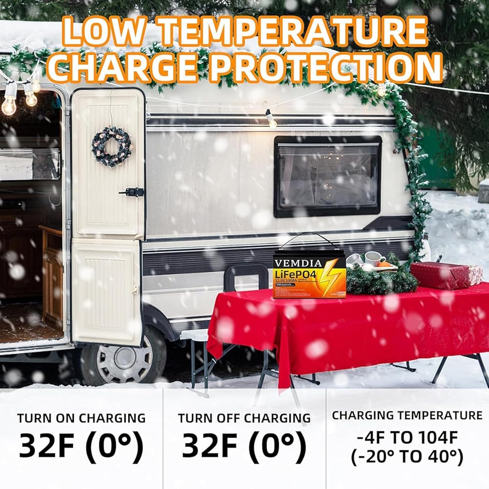 【فعال ومريح】- يوفر BMS المدمج (نظام إدارة البطارية) الحماية الكاملة. نطاق درجة حرارة تشغيل واسع مع نطاق شحن يتراوح من 0 إلى 45 درجة مئوية ونطاق تفريغ -20 إلى 60 درجة مئوية، ويعمل بشكل موثوق في كل من الصيف الحارق والشتاء المتجمد، وهو مثالي للتطبيقات الخارجية. تتمتع بطارية 12V 100Ah بقدرة ثابتة بينما تتمتع بطارية الرصاص الحمضية بانخفاض ثابت في الطاقة عند استخدامها. سيؤدي تفريغ بطاريات الرصاص الحمضية أقل من 50% إلى تقصير عمر البطارية، لكن بطاريات الليثيوم لن تفعل ذلك.