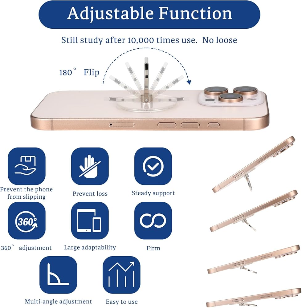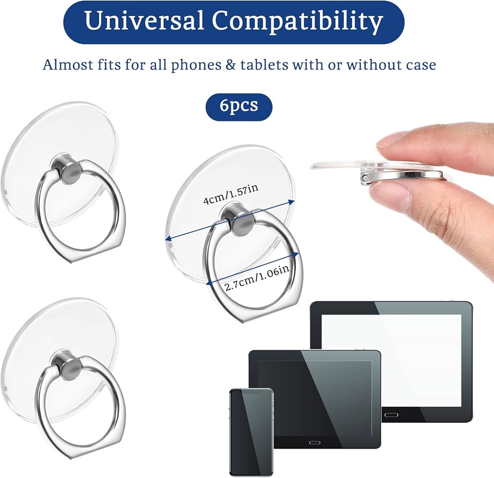 Compatible with most phone cases, this phone ring for the back of your phone is easy to install and offers a sleek, transparent design that complements any device.