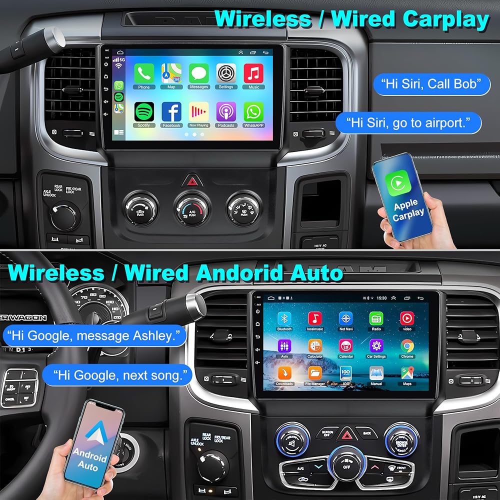【سلكي/لاسلكي CarPlay & Android Auto】ستيريو سيارة Android 13 لـ GMC/Chevrolet/BUICK يدعم Apple CarPlay السلكي/اللاسلكي وAndroid Auto، مع اتصال سلكي أو اتصال لاسلكي من خلال البلوتوث، يمكنك الوصول بسهولة إلى تطبيقات هاتفك. يمكنك أيضًا تنشيط المساعد الصوتي Siri أو Google Assistant لتشغيل التطبيقات على هاتفك، واستخدام نظام تحديد المواقع العالمي (GPS) بسهولة، والمكالمات، والرسائل، والموسيقى، والمزيد من الوظائف مع الحفاظ على يديك حرتين للقيادة الآمنة.