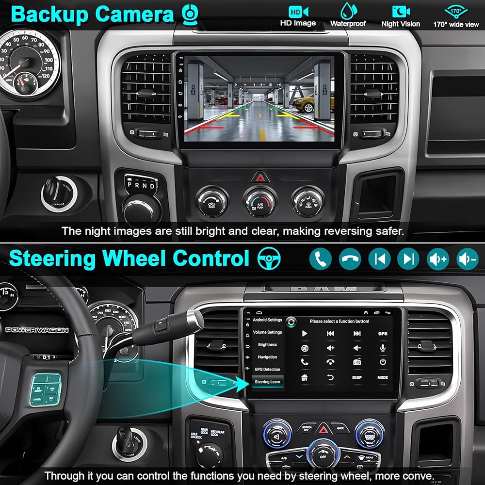 【التحكم في عجلة القيادة، كاميرا احتياطية】 استخدم أزرار عجلة القيادة للتحكم في صوت السيارة، وهو أكثر ملاءمة للتشغيل وأكثر أمانًا للقيادة. كاميرا رؤية ليلية مقاومة للماء، صور عكسية أكثر وضوحًا، مما يوفر المساعدة في ركن السيارة. مناسبة لوقوف السيارات في الليل. تبديل صورة الرجوع تلقائيًا عند الرجوع للخلف. مناسبة للتركيب على معظم حاملي لوحات الترخيص.