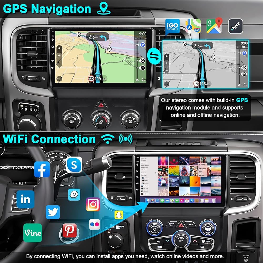 【الملاحة بنظام تحديد المواقع العالمي (GPS) والواي فاي】وحدة الملاحة الرئيسية بنظام تحديد المواقع العالمي (GPS) المدمجة وهوائي نظام تحديد المواقع العالمي (GPS) الخارجي للتنقل عبر الخرائط عبر الإنترنت أو دون الاتصال بالإنترنت. بيانات الخرائط غير المتصلة بالإنترنت محملة مسبقًا، وجاهزة للاستخدام بعد التثبيت، وتتضمن الاتجاهات الصوتية والمرئية، أكثر من 11 مليون مكتبة للنقاط المهمة، ومسارات ثنائية وثلاثية الأبعاد، ومتعقب الوقود. يدعم راديو السيارة هذا أيضًا اتصال WIFI Hot-spot، ويمكنك بسهولة الوصول إلى تطبيقات الملاحة عبر الإنترنت وتنزيلها وInstagram وFacebook وTikTok وما إلى ذلك على متجر Play.