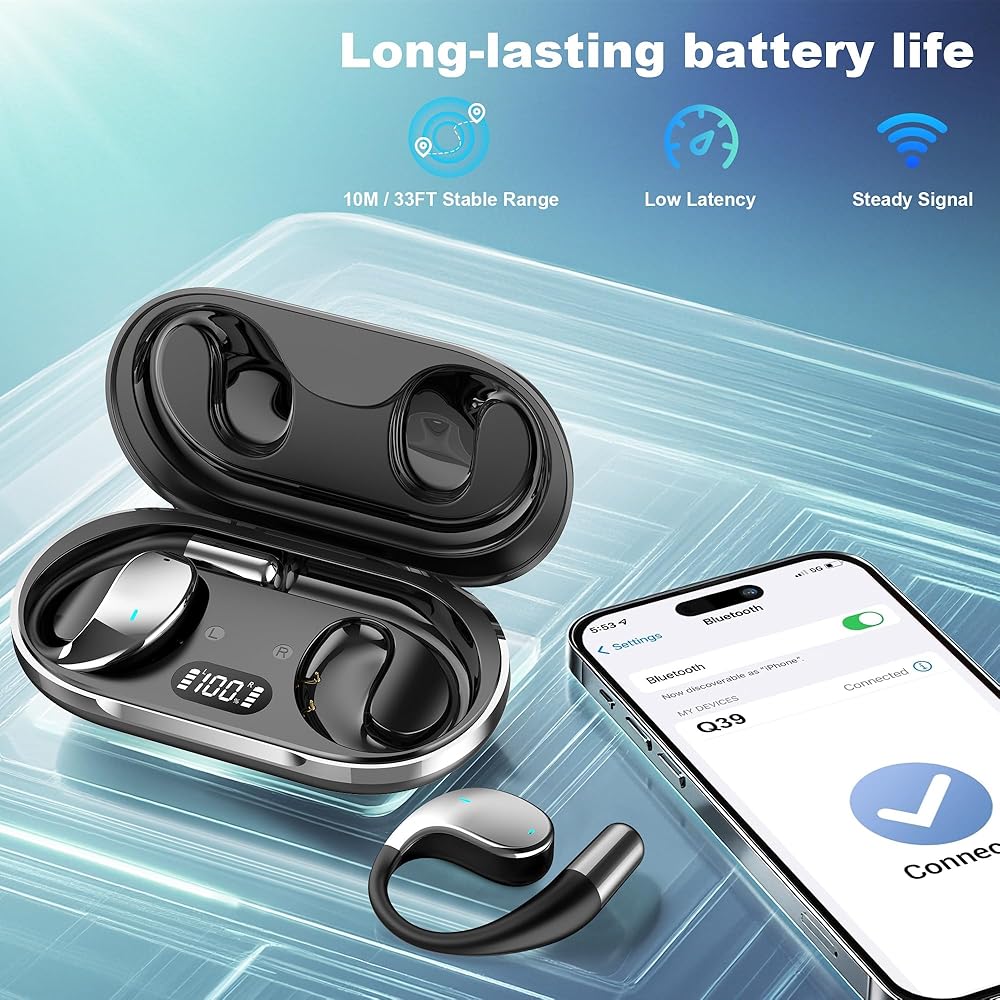 【تصميم ملائم هندسيًا】 تتميز سماعات الرأس هذه بمفهوم سماعة الرأس المفتوحة المميزة لدينا، وقد تم تصميمها بزاوية مريحة تبلغ 20 درجة، مما يسمح لخطافات الأذن بالتكيف بحرية مع شكل أذنيك للحصول على تجربة ارتداء أكثر راحة. تم تصميم سماعات الرأس المفتوحة هذه بدقة لتناسب محيط أذنيك بشكل آمن.