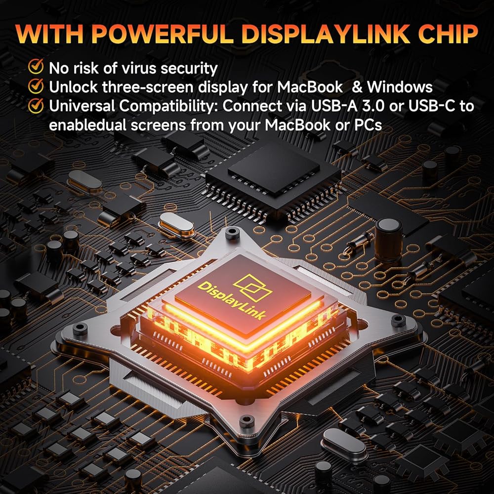 • كابل واحد، شاشة ثلاثية - شاشة السفر لتدفق طاقة الكمبيوتر المحمول والفيديو عبر كابل USB-C واحد - أو قم بالتبديل إلى USB-A 3.0-to-C للتوافق العالمي - مما يزيل المحاور والأسلاك الفوضوية. يعمل على الفور مع أجهزة MacOs (تحتاج إلى تثبيت برنامج تشغيل "DisplayLink" يدويًا)، وأجهزة الكمبيوتر التي تعمل بنظام Windows، وiPhone 15/Pro/Max (فيديو USB-C)، وSteam Deck، كنسخة احتياطية متعددة الاستخدامات، يضمن حل HDMI+USB-A الخالي من السائق اتصالاً موثوقًا لأي جهاز قديم تقريبًا.
