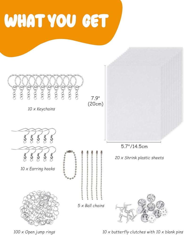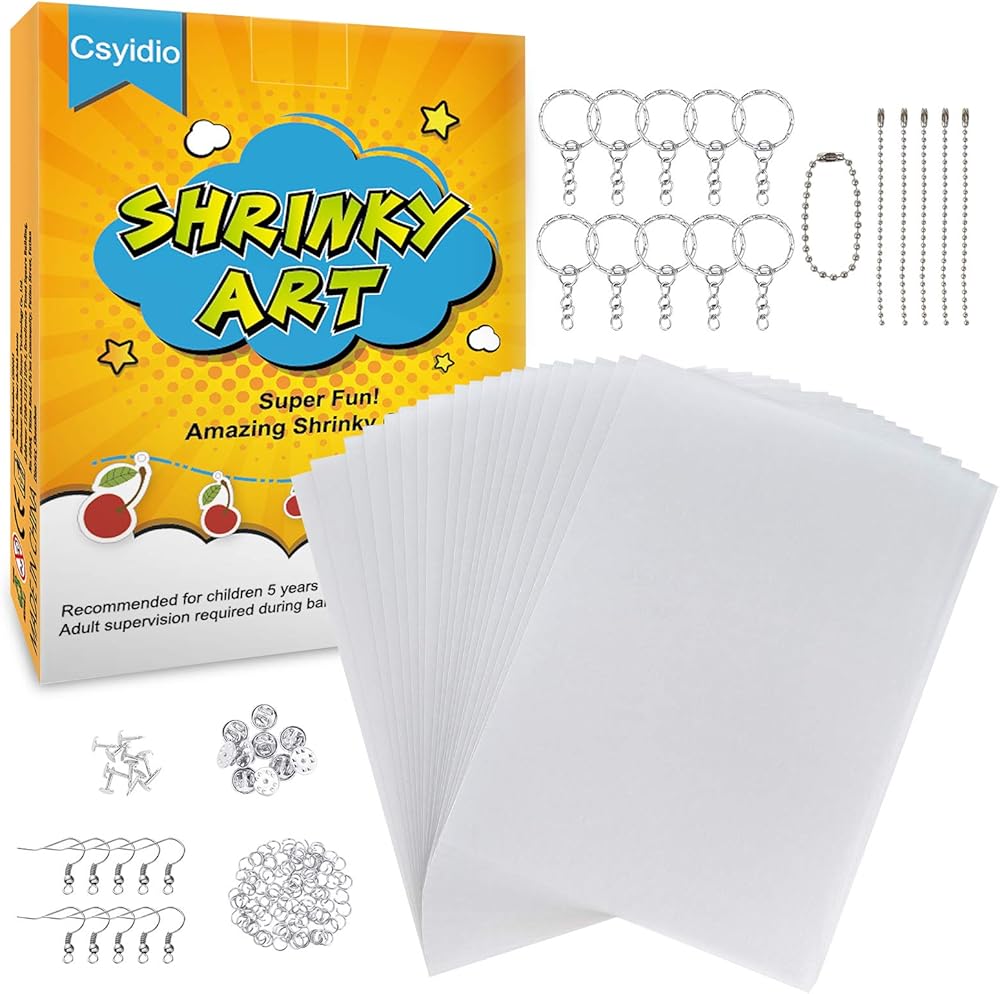 تتضمن مجموعة ملاءات الانكماش المكونة من 165 قطعة من Csyidio 20 قطعة من أوراق الأفلام المنكمشة و145 قطعة من الملحقات المعدنية، مجموعة ملاءات بلاستيكية منكمش لهدايا الهالوين للأطفال في الأماكن المغلقة لمشروع المدرسة الحرفية الإبداعية