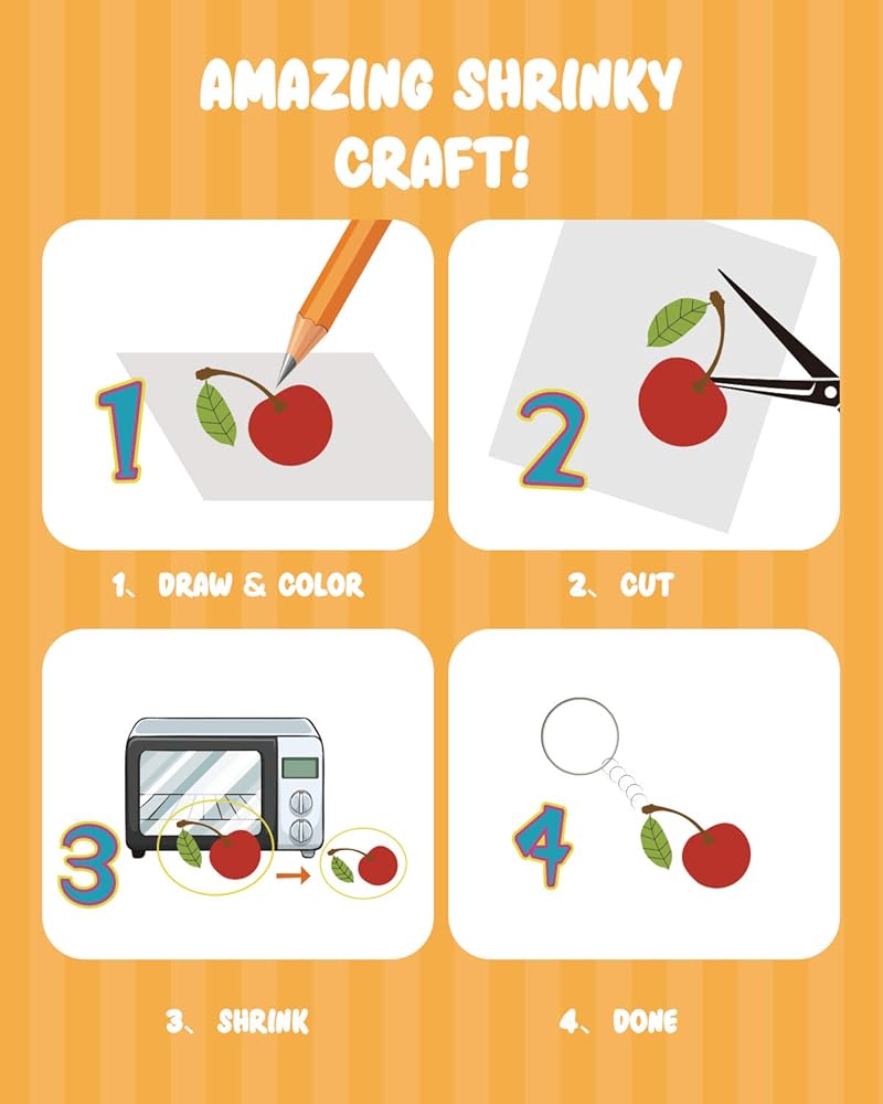 سهل الاستخدام - ما عليك سوى رسم وتلوين تصميمك المفضل على أوراق الانكماش المصقولة، ثم قصه بالمقص وسوف ينكمش الغشاء المنكمش في الفرن الخاص بك.